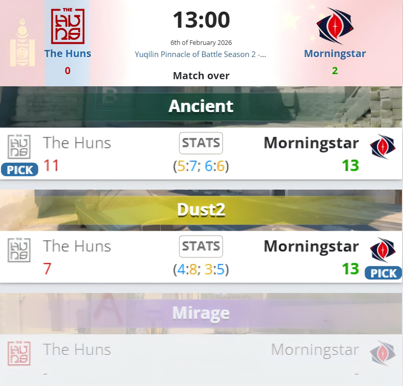 虎扑02月06日讯BLAST鹿特丹亚洲区封闭预选赛揭幕战:中国战队Morningstar对阵蒙古战队TheHuns