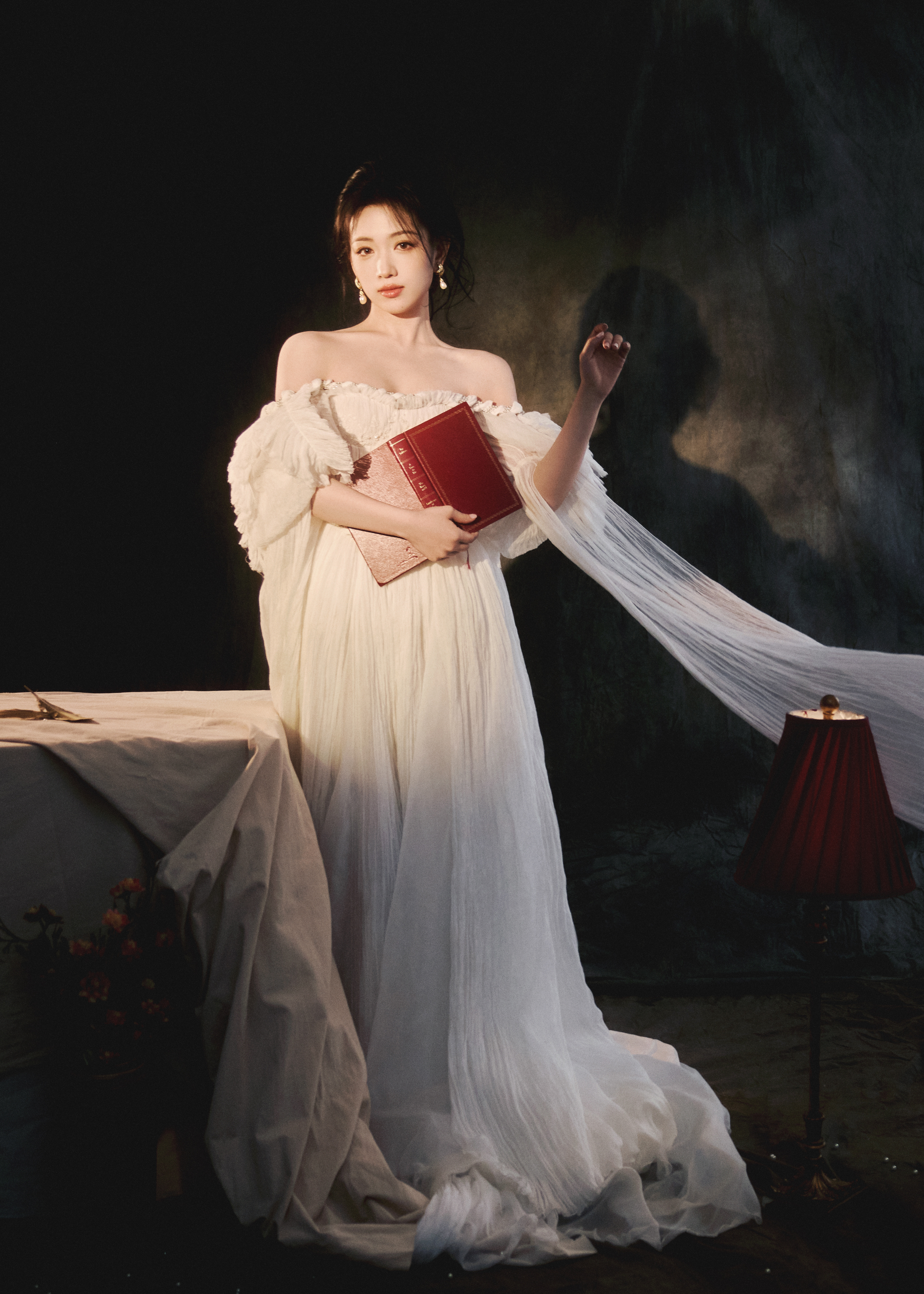 代露娃 无需刻意张扬,白裙衬得肌肤胜雪,抬眸间的风情,早已胜过千言万语。