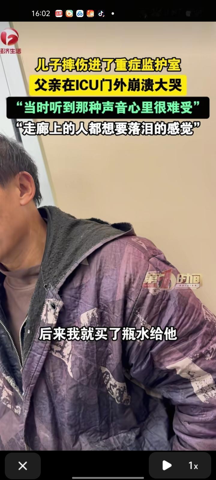 2月5日,江西赣州。网友发视频称,15岁小孩骑摩托车摔倒了,可能情况不好被救护车送到ICU,他爸爸在ICU门外崩溃大哭,而自己的亲人也在ICU观察,听到这种声音心里就很难受,看着走廊上的人都想要落泪的感觉,现在基本稳定了