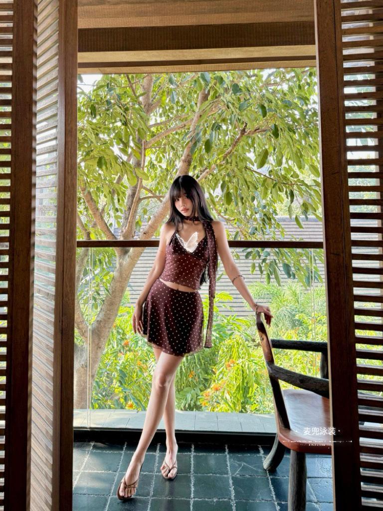 泰兰德度假风~波点咖色显白高级感泳装穿什么颜色的泳衣更安全? 游泳时穿什么颜色的泳衣更安全? 沙滩泳装美女比基尼 泳衣 比基尼紫色比基尼穿搭 泳装穿搭风格 泳装度假风格 紫色比基尼写真 粉紫泳衣 甜辣泳装穿搭