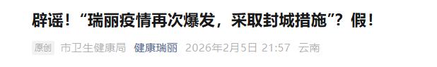 目前,瑞丽市未发生重大传染病疫情,也未采取任何“封城”措施。全市生产生活秩序正常,边境口岸运行平稳有序。公安部门将根据具体情况依法对谣言发布者进行处理。