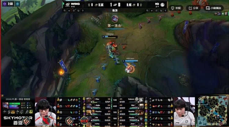 第一局:一万六这么难!Xiaohu瑞兹输出稳Elk卡莎16杀收尾WBG赢首局