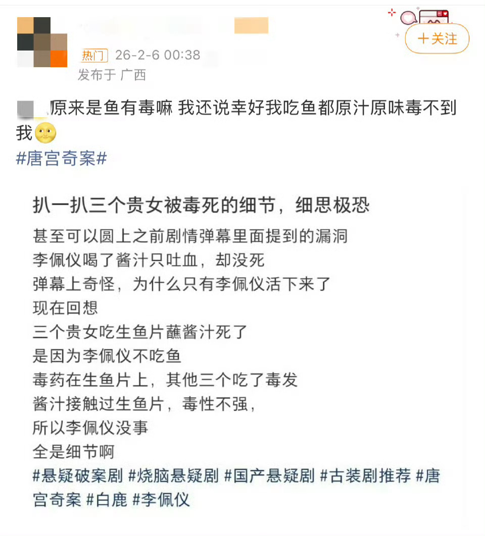 唐宫鱼有毒vs酱汁有毒 谁懂啊家人们!看唐宫奇案 光顾着被李佩仪灌毒的名场面震撼,刷评论才捋清鱼毒和酱汁毒的关联,全程脑子追不上剧情,看完直接感觉智商被按在地上摩擦😂