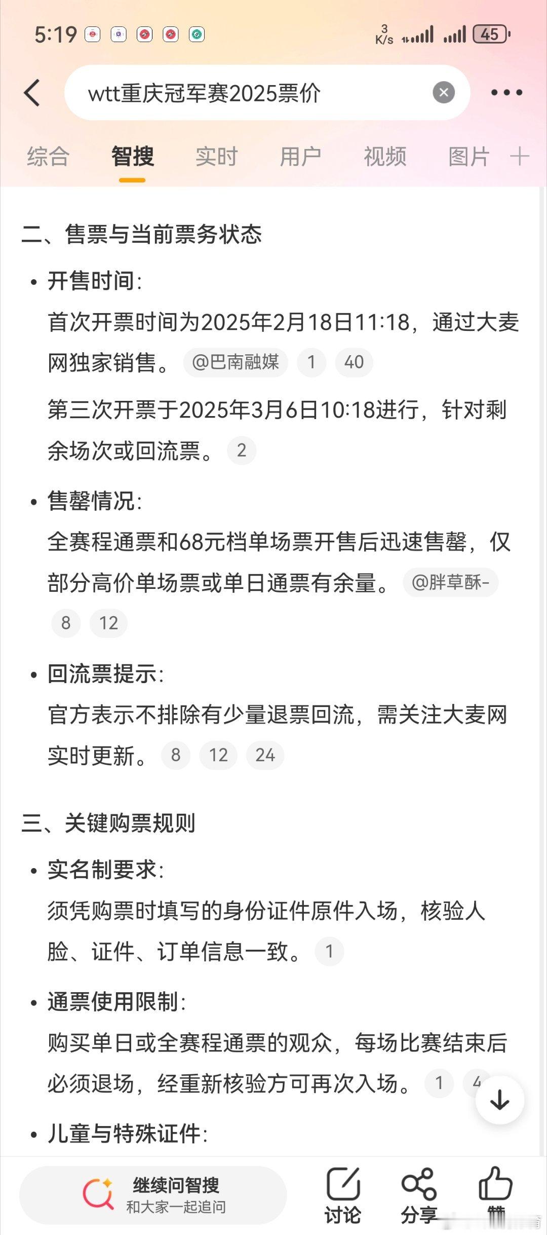 WTT重庆冠军赛票价公布最低档68最高档1000多这差距属实有点大啊,. 通票类别全程内场通票:10756元(覆盖3月10日-15日所有场次);单日通票(分日期定价):3月10日/11日:1276元3月12日:1476元3月13日:1876元3月14日:2176元3月15日(决赛日):2676元。