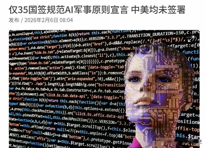 中美两国都不参与!这一次中美倒是难得的有默契!2月6日,根据新加坡联合早报报道,85个国家参加了在西班牙拉科鲁尼亚举行的“军事领域负责任使用AI”峰会,结果仅有35与会国家签署一项关于AI的20项原则承诺。外媒称,两大军事强国,美国和中国都未在联合宣言上签字。 这事儿挺有意思。全球八十多个国家聚在一块儿讨论AI军事化规则,签字的却不到一半。更微妙的是,中美这两个最该坐下来的国家,反而都没动笔。默契来得突然,背后藏着什么心思? 有人觉得这是大国博弈的又一次体现。AI军事应用早不是科幻情节,无人机、自主侦察系统、智能决策辅助……这些技术谁领先,谁就攥住了未来战场的钥匙。这时候谈“限制”,难免触动敏感神经。 美国军方去年刚成立“AI特遣队”,中国也在“智能+”国防领域持续投入。双方技术路线不同,战略考量各异。让他们轻易接受同一套规则,难。不签字不代表不负责,或许只是不想被过早束缚。 再看那二十条原则,内容涵盖透明性、人类监督、风险防控等方面。理想很丰满,现实却骨感。国际协议缺乏强制力,最终往往沦为“纸面文章”。三十五国签字已算成果,想拉拢所有大国加入,目前看来不太现实。 AI军事化是把双刃剑。它能减少误判、提升精度,也可能触发失控风险。今年初联合国就警告过,致命性自主武器系统急需规范。但规范由谁定?怎么执行?全是难题。 中美这次默契缺席,恰恰暴露了国际治理的深层困境。技术跑得太快,规则追得吃力。各国都在试探边界,既怕落后,也怕冒进。这种矛盾心态,让全球共识难以凝聚。 未来会怎样?竞争不会停止,对话也不能中断。或许下次峰会,会有更务实的方案。但在此之前,每个国家都得在心里掂量:AI这把火,究竟该怎么握? 各位读者你们怎么看?欢迎在评论区讨论。
