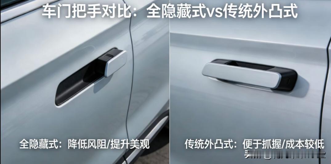 再见了,全隐藏式门把手,2027年1月1日开始,这种全隐藏式门把手就不能再生产了。 本来家用车这些就没用,就是给人超跑,设计出来更漂亮、更美观、更流畅、速度更快的。结果什么都非得往这种普通家用车上装。