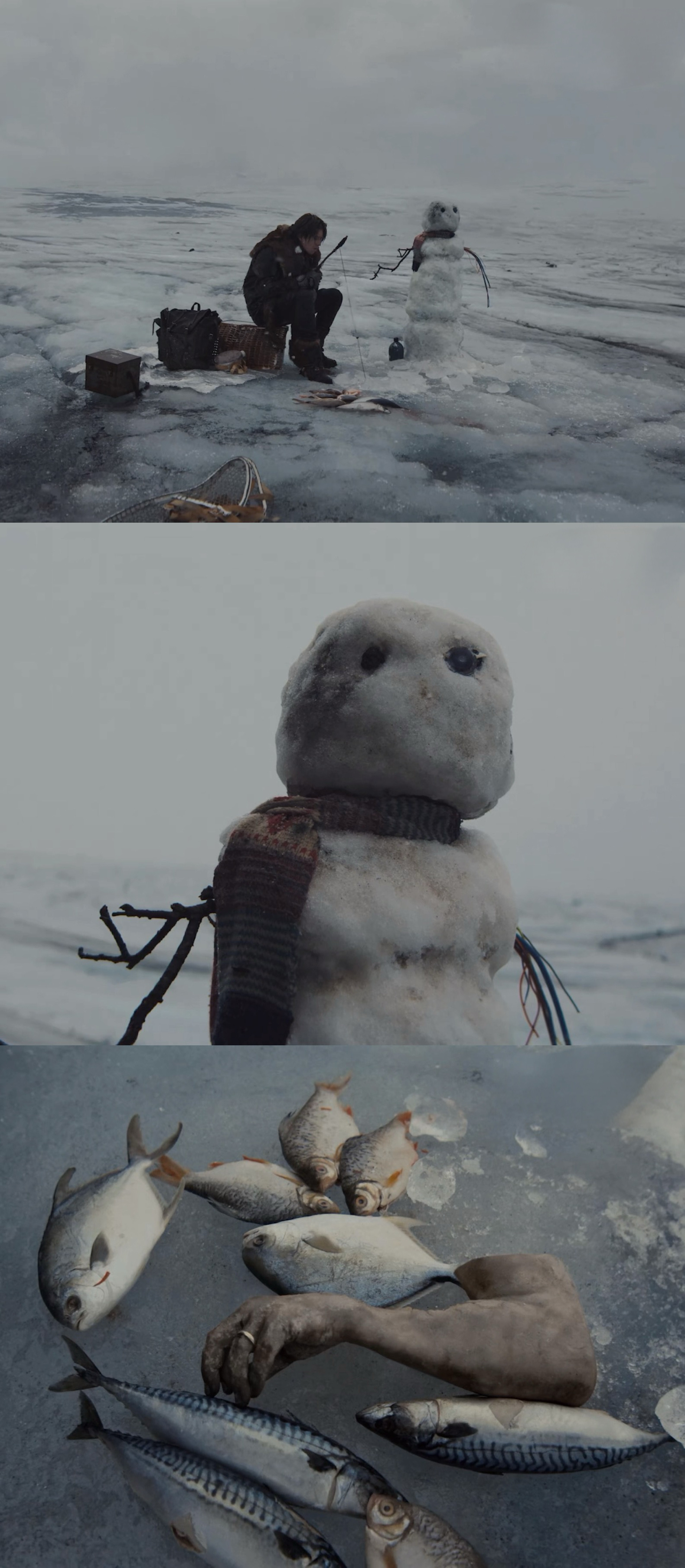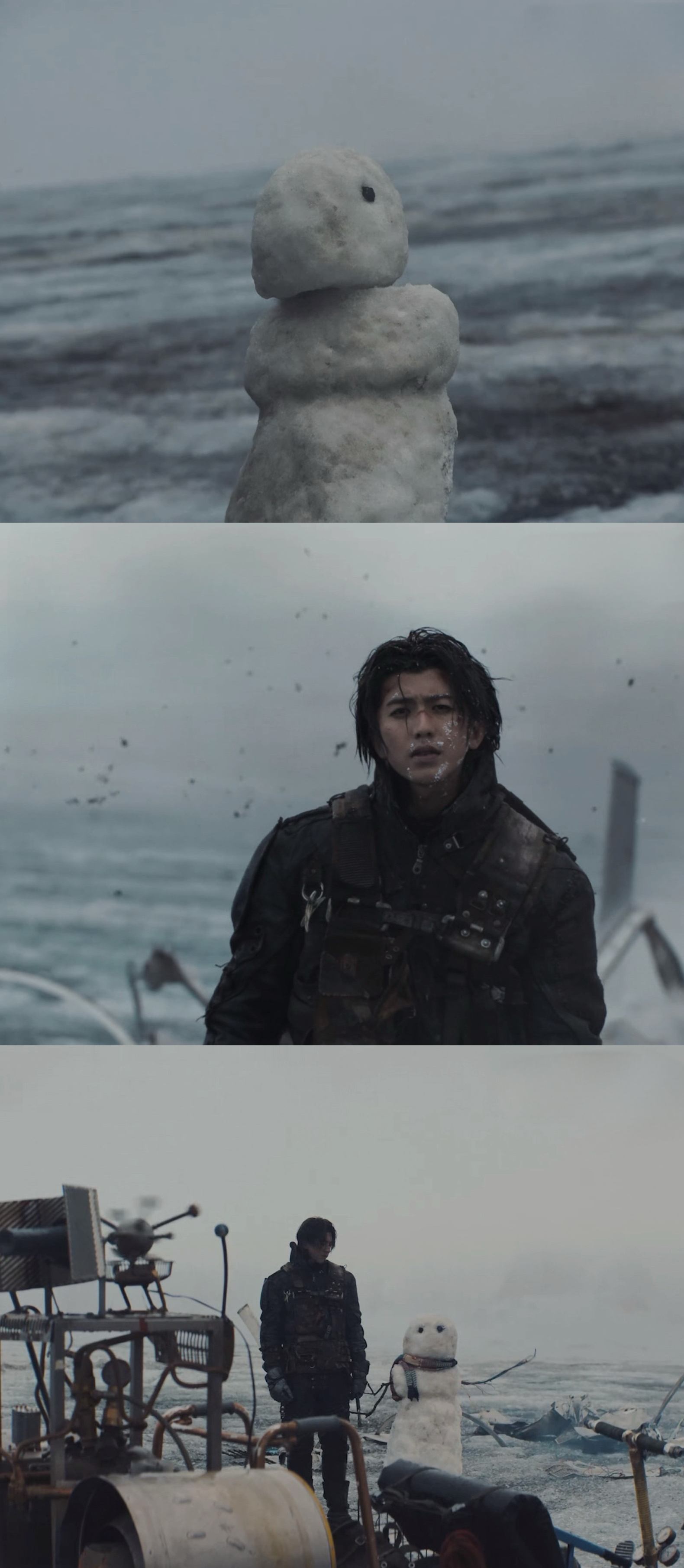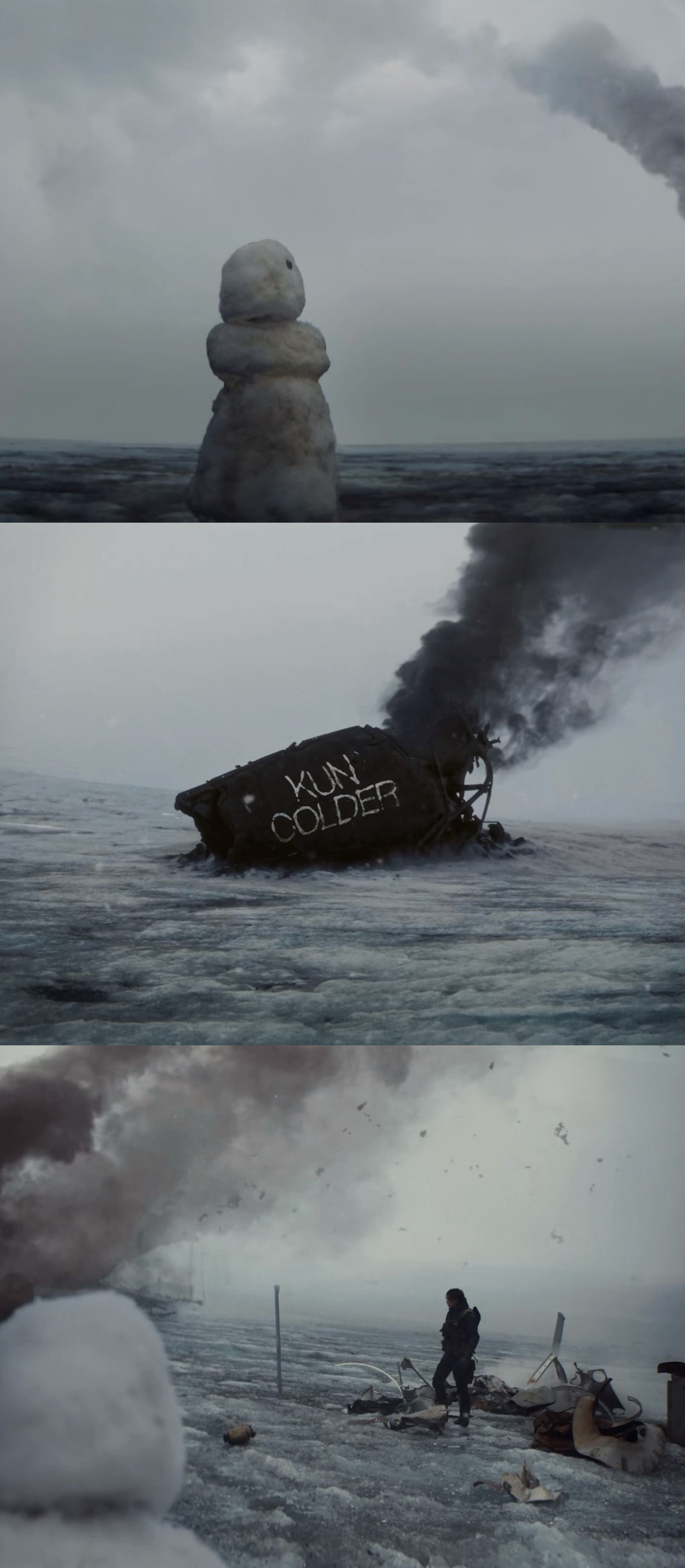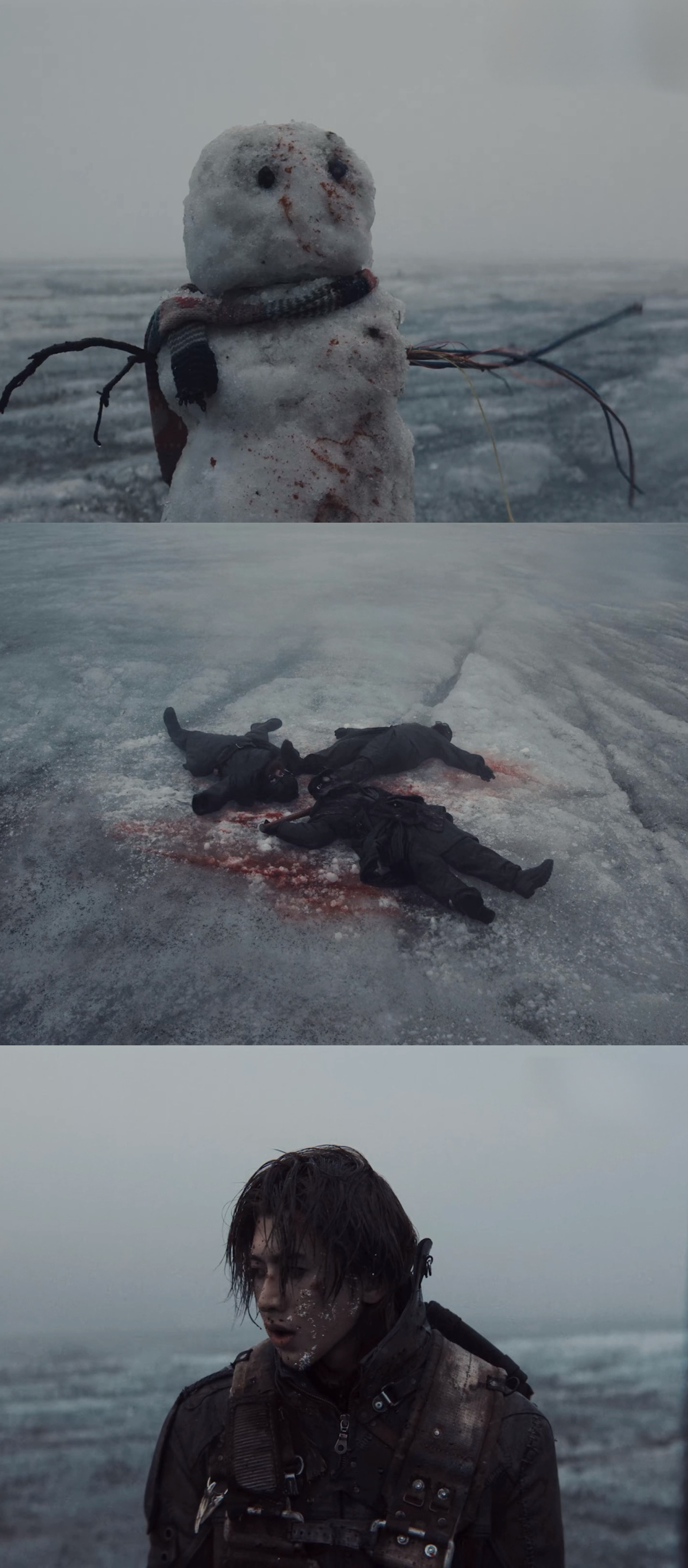 《Colder》的MV很诡异萌,很温暖,但看到最后又有点想哭,搭配蔡徐坤驾驭力越来越强的嗓音,非常有品,已经不记得上一次觉得一支MV“好好看啊”是什么时候了冰岛实景拍的质感和诚意一眼可知,审美好到我都觉得在看大银幕了。简洁的黑白色配上荒无人烟的冰岛雪景,冰原上流亡、冰雪暴以及各种末世怪诞感的画面,让人分不清这到底是劫后余生的美丽奇迹还是濒死的幻觉而MV本身是一幕怪诞的童话,坠落飞机硬核的机械,却重塑了一个柔软脆弱的雪人,和流浪者相互陪伴、奔亡、躲避追杀,极致的冰冷却滋养了柔情,而这份感情却存续在两个极端的物种之间。明明没有对白,但你知道他们可以听见彼此心的共鸣。就好像每个孤单的孩子小时候幻想出来的朋友,你和它交流,幻想着和它一起冒险,赋予它属于你的一部分。最后的落点却是小时候的童话雪娃娃,黑白边界上留下来的陪你继续的其实还是你自己,随之而来的也是人生底色的孤独感,我们也就这样长大了。再之后还想各种回味,又找到整张专辑已经听上了,每首都很像在听一部不一样的电影,真的是张创造力与审美溢出来的神专啊