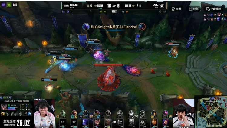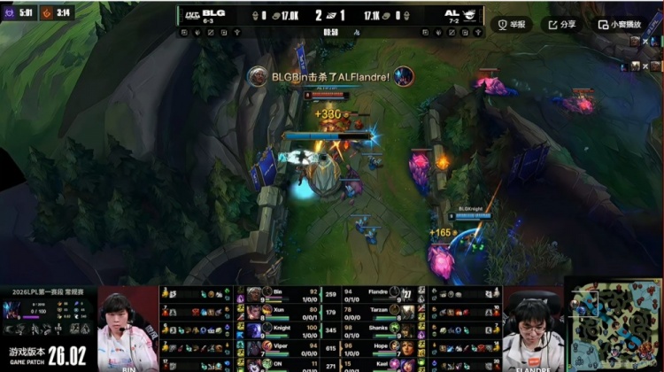 [17:04]BLG找到机会连续击杀AL中野,但是AL先后拆掉了对手的中上双一塔!