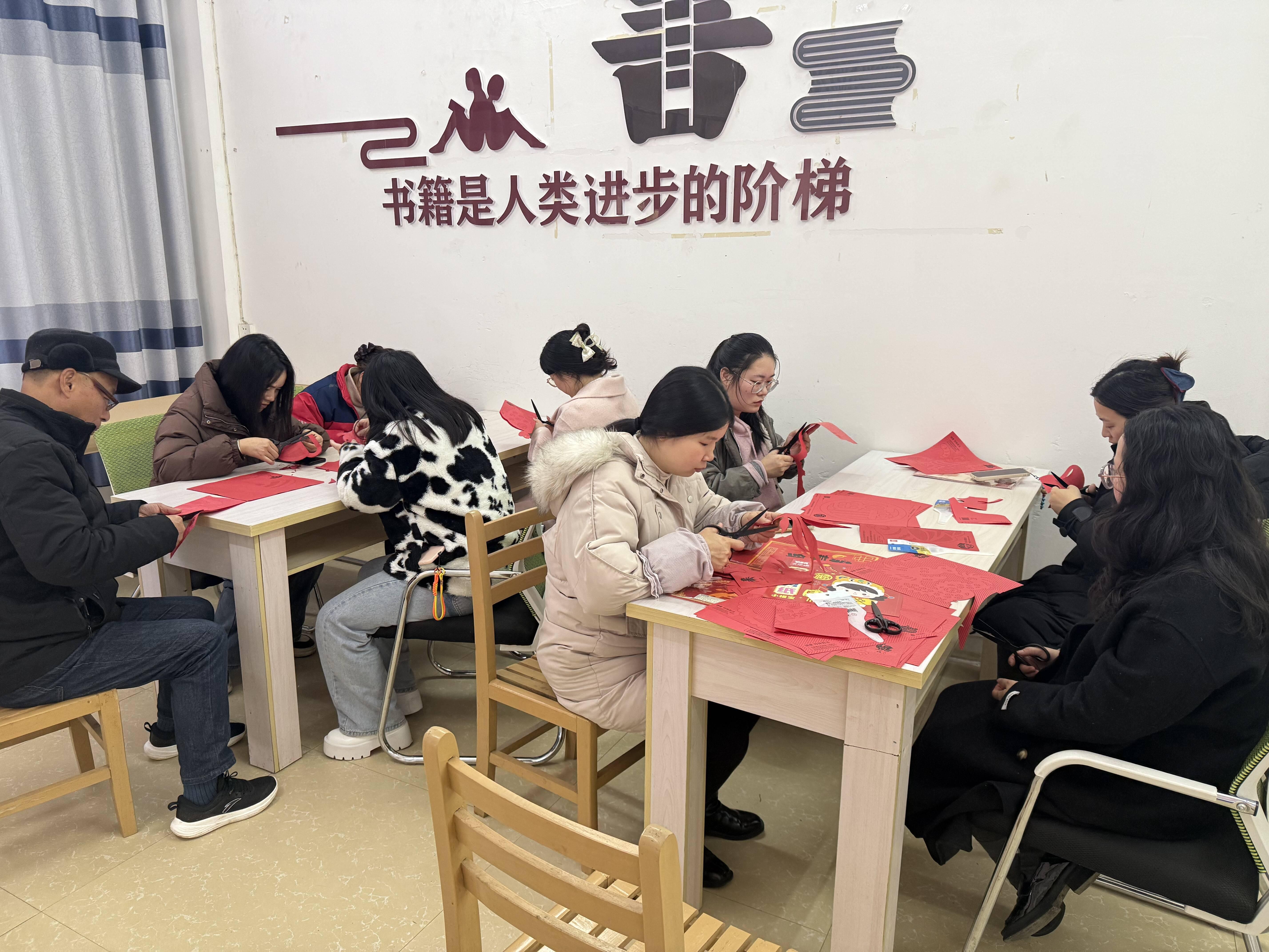 大家围坐一堂,认真聆听、踊跃尝试。剪刀开合间,红纸变身“福”字、花鸟等精美图案,每幅作品都饱含对新年美好生活的向往。大家交流技巧、分享成果,欢声笑语中,年味在指尖与邻里间传递。