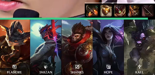 AL选用:Flandre兰博;Tarzan猴子;Shanks永恩;Hope卡莎;Kael牛头