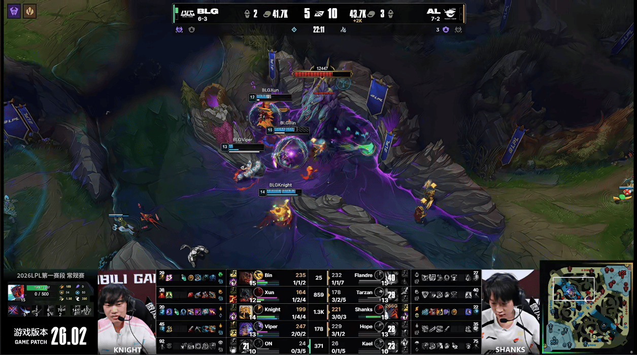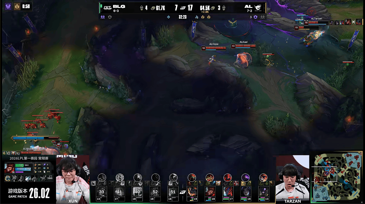 虎扑02月06日讯GAME2:BLG蓝色方;AL红色方