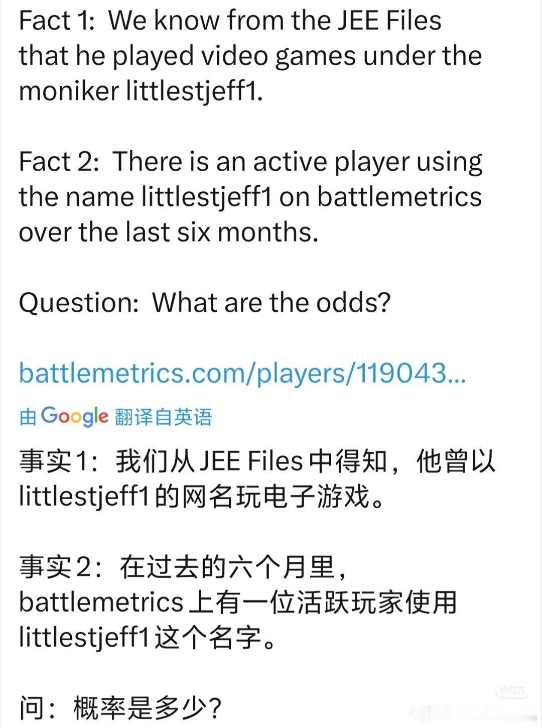 爱泼斯坦游戏账号还在活跃,刚刚才转为私密,有人怀疑他没死。