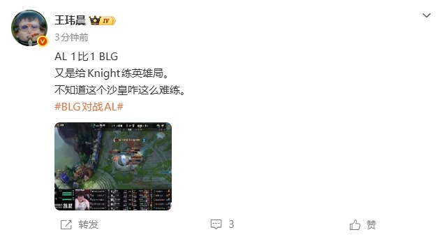 媒体人:又是给Knight练英雄局 不知道这个沙皇咋这么难练