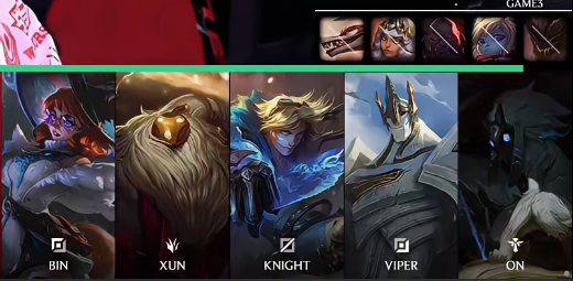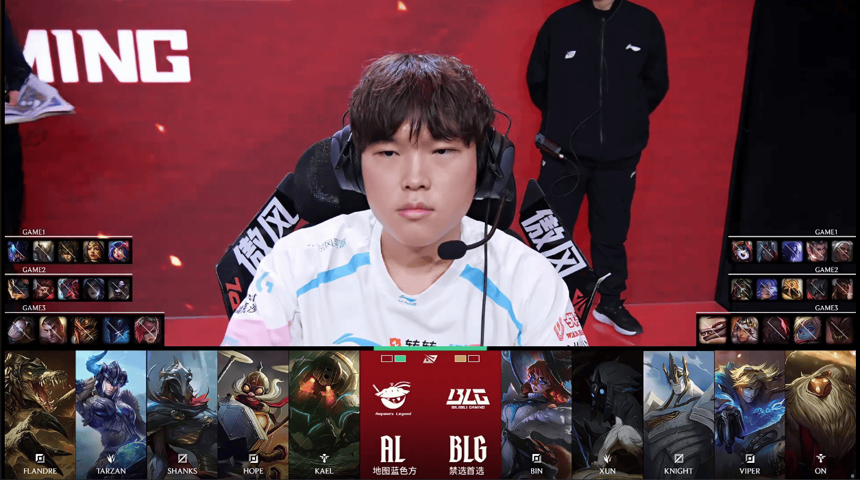 BLG选用:Bin阿萝拉;Xun千珏;Knight加里奥;Viper伊泽瑞尔;ON巴德