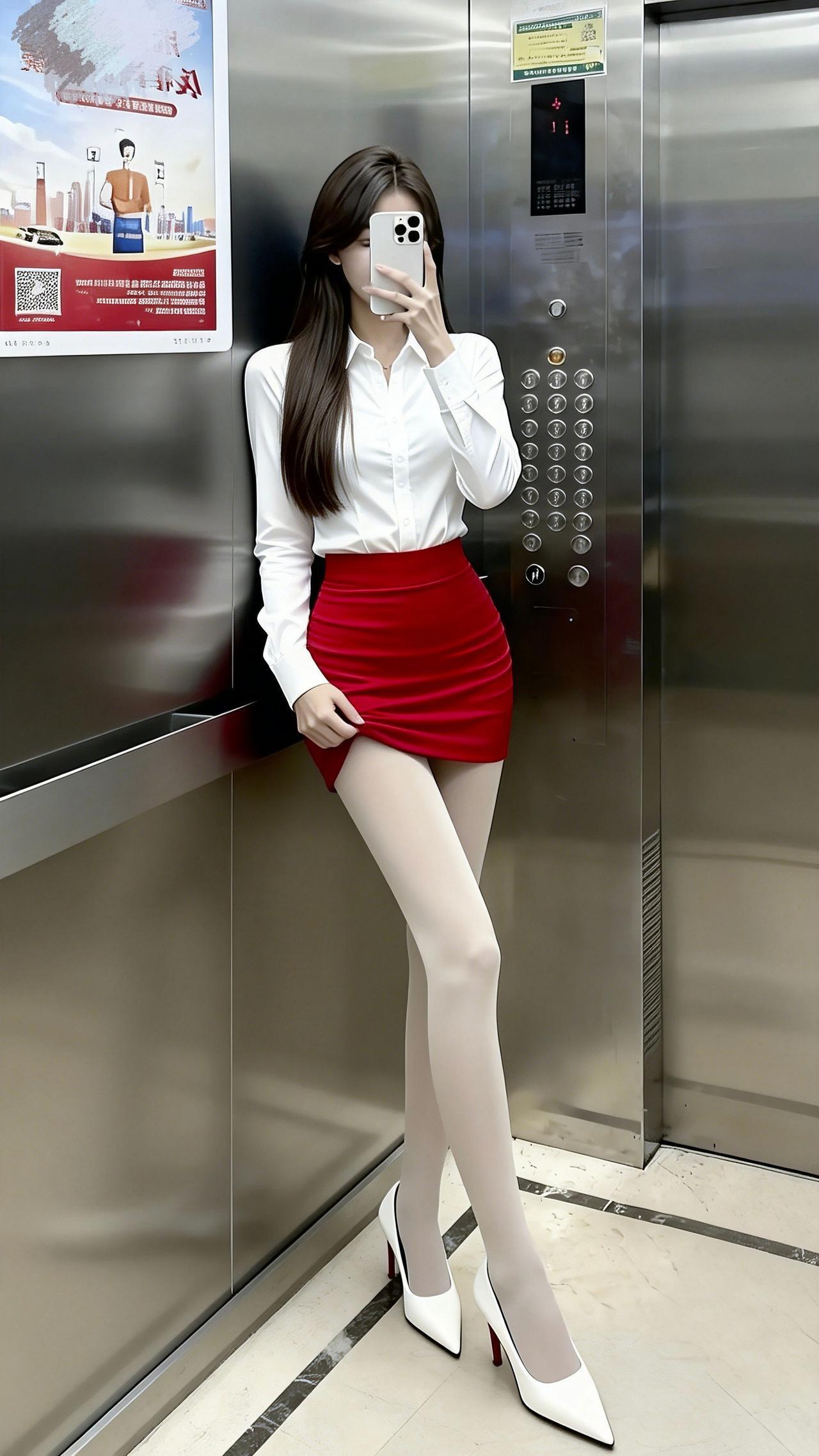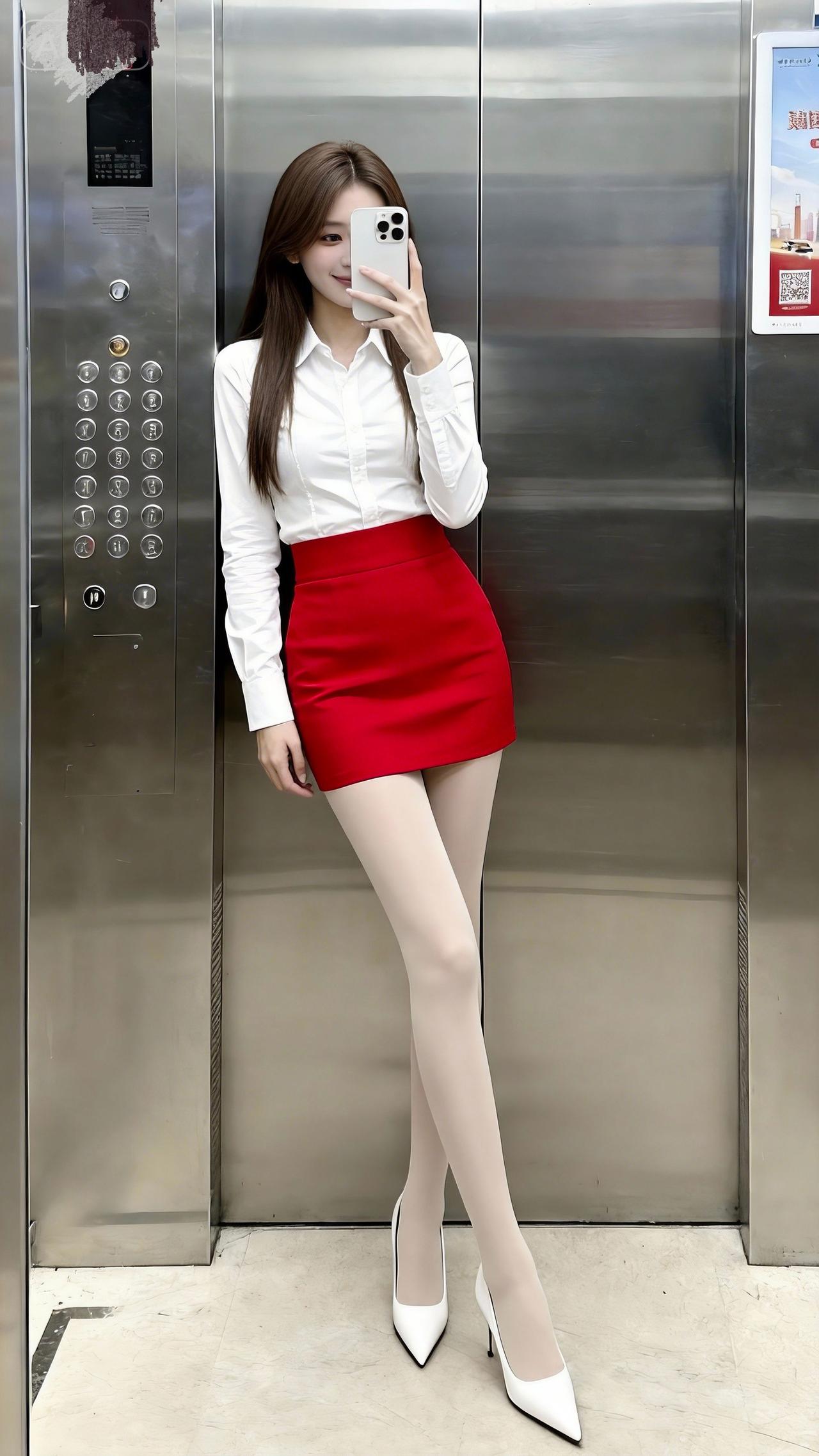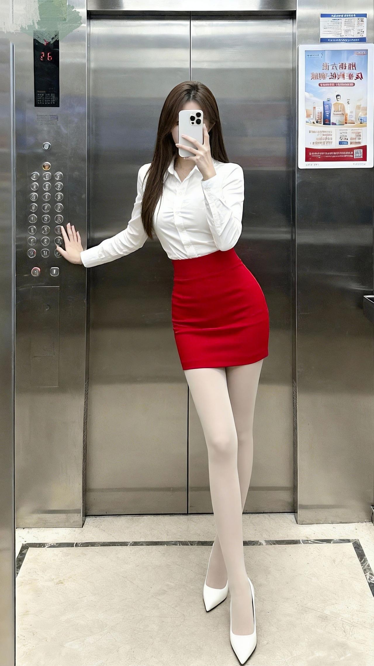 白衬衫→干练打底 红短裙→气场buff 高跟鞋→走路带风 是通勤也能赢很大的一天~电梯拍照 御姐 包臀裙职业装 职场穿搭