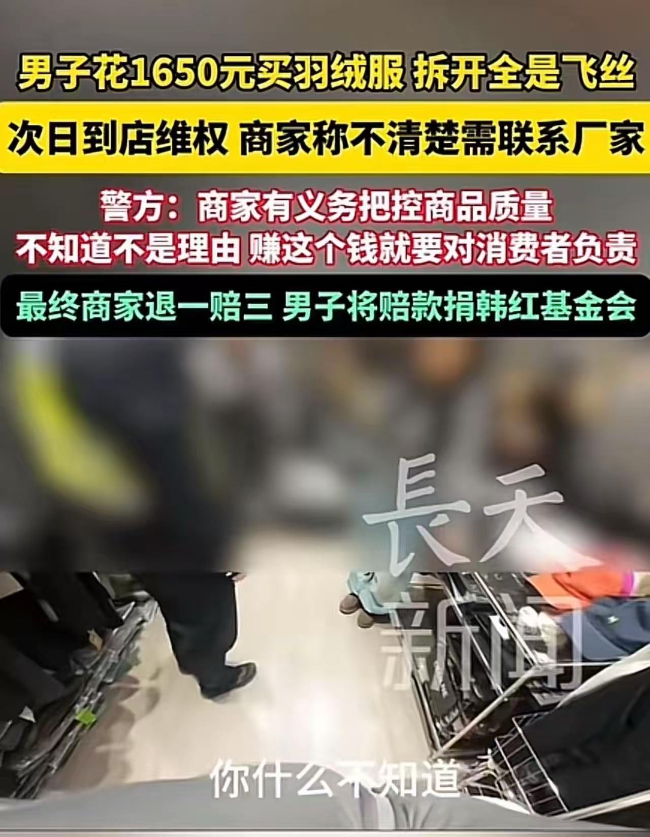 男子花1650元买“羽绒服”竟无羽绒,民警到场后商家懵了 1650元买回的羽绒服,拆开一看竟无半朵羽绒!消费者维权遭推诿,商家反客为主竟报警。可当民警到场,剧情反转——这场看似普通的消费纠纷,撕开了多少商家“睁一只眼闭一只眼”的潜规则? “我不差钱,但你不能把我当傻子!” 武汉市民张先生至今仍忘不了那种被愚弄的感觉。上周,他在一家装修考究的服装店,为父亲精心挑选了一件标价1650元的“90%白鸭绒”羽绒服。温暖厚实的手感、光鲜亮丽的标签,让他觉得这钱花得值。 可当父亲穿上后嘀咕“感觉有点沉,不蓬松”时,张先生多了个心眼。他小心翼翼地剪开内衬一角,眼前的一幕让他怒火中烧——填充物根本不是宣称的洁白羽绒,而是一团团灰白色、质地粗糙的“飞丝”(化学纤维下脚料)。 商家神操作:自己售假,还主动报警 次日,张先生拿着衣服和视频证据到店理论。女店长先是故作惊讶:“不可能!我们都是正规渠道进货。”查看后又称:“这可能是批次问题,我们不清楚,得联系厂家。” 当张先生依据《消费者权益保护法》明确提出“退一赔三”时,店长态度骤变,开始推诿责任。令人匪夷所思的是,或许是见张先生态度坚决,店长竟掏出手机:“你这是要闹事,我报警了!” 民警到场,一句话让商家傻眼 民警迅速到达现场。了解事情原委、检查了衣服和购物凭证后,经验丰富的民警转向店长,问了几句关键的话: “这件衣服是你们店里卖出去的吗?” “销售时,你们是否向消费者明示填充物是‘飞丝’而不是羽绒?” “你们进货时,有没有查验厂家的质检报告?” 店长支支吾吾,难以作答。民警正色道:“根据《消费者权益保护法》,经营者提供商品有欺诈行为的,应当按照消费者的要求‘退一赔三’。你们作为销售方,有责任保证商品与宣传相符。如果觉得自己也是受害者,可以找你们的厂家追责,但不能以此为由拒绝消费者正当的维权要求。” 在民警的现场普法与协调下,店长的气焰终于熄灭。目前,该店已为张先生办理了退款,并承诺将尽快履行三倍赔偿。同时,市场监管部门也已介入,对涉事门店及上游供货链展开调查。 飞丝冒充羽绒?这不是“失误”,是套路! 一位从事服装质检行业多年的业内人士透露:“用飞丝、化纤棉等低价材料冒充羽绒,在业内尤其是中低端市场并非个例。两者成本相差巨大,一吨优质羽绒可能要数十万元,而一吨飞丝可能只需万元左右。” 这种造假通常有两种形式: 1. 完全造假:整件衣服无一丝羽绒,全是飞丝。 2. 掺杂使假:在羽绒中混入超过标准允许范围的大量飞丝,以次充好。 消费者如何避免“踩坑”? 1. 一摸二闻三看:真羽绒服摸上去有细小羽梗,但整体柔软蓬松;用力拍打后回弹快;闻起来应有轻微羽毛味,而非化工味。仔细查看水洗标上的填充物成分、含绒量、充绒量是否标注清晰。 2. 警惕异常低价:一件充绒量足够的羽绒服,成本决定了其售价不会过于低廉。 3. 保留凭证,勇于维权:务必保留购物小票、支付记录。一旦发现问题,第一时间与商家沟通,并可通过12315平台、市场监督管理局等渠道投诉。面对欺诈,法律是消费者最坚实的后盾。 张先生的遭遇,不仅是个人的维权胜利,更是一记警钟。它提醒所有商家:诚信才是最长久的招牌,任何试图用“潜规则”欺瞒消费者的行为,终将在法律和阳光下无处遁形。它也鼓励每一位消费者:面对不公,要敢于发声,你的每一次较真,都是在净化市场环境,推动商业文明向前一步。 市场的健康,需要监管的利剑,更需要千万双不再沉默的眼睛。