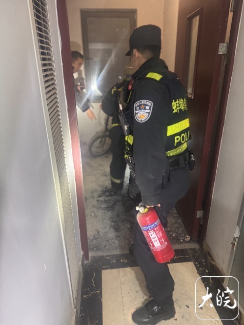 大皖新闻讯2月5日晚,蚌埠市万达悦府A区一高层楼道突发锂电池起火险情,蚌埠市公安局特巡警多警组快速联动、妥善处置,成功化解险情,全程未造成人员受伤及重大财产损失,切实保障了辖区群众生命财产安全。