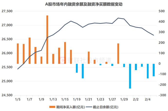注:A股市场年内融资余额及融资净买额数据变动(截至2月5日数据)