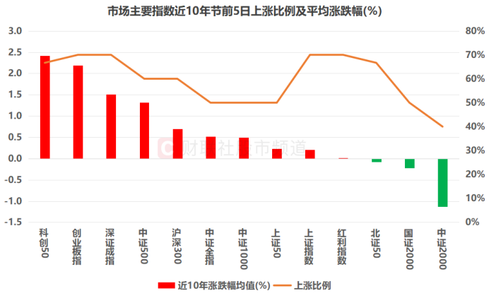 注:市场主要指数近10年(2016年至2025年)节前5日上涨比例及平均涨跌幅
