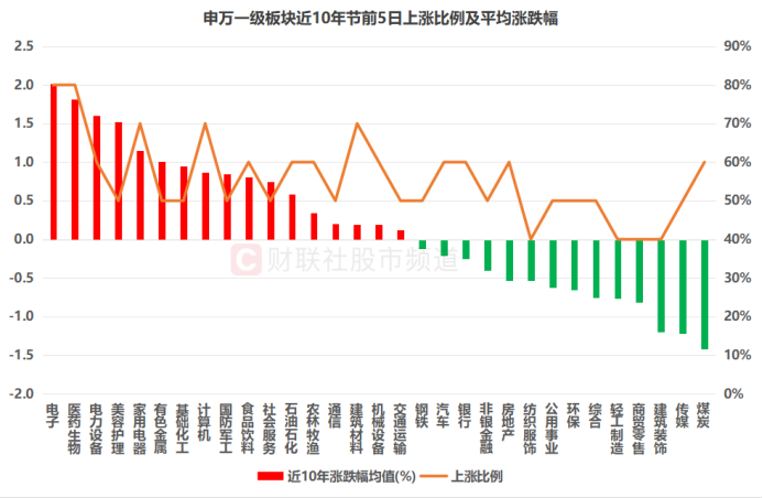 注:申万一级板块近10年(2016年至2025年)节前5日上涨比例及平均涨跌幅