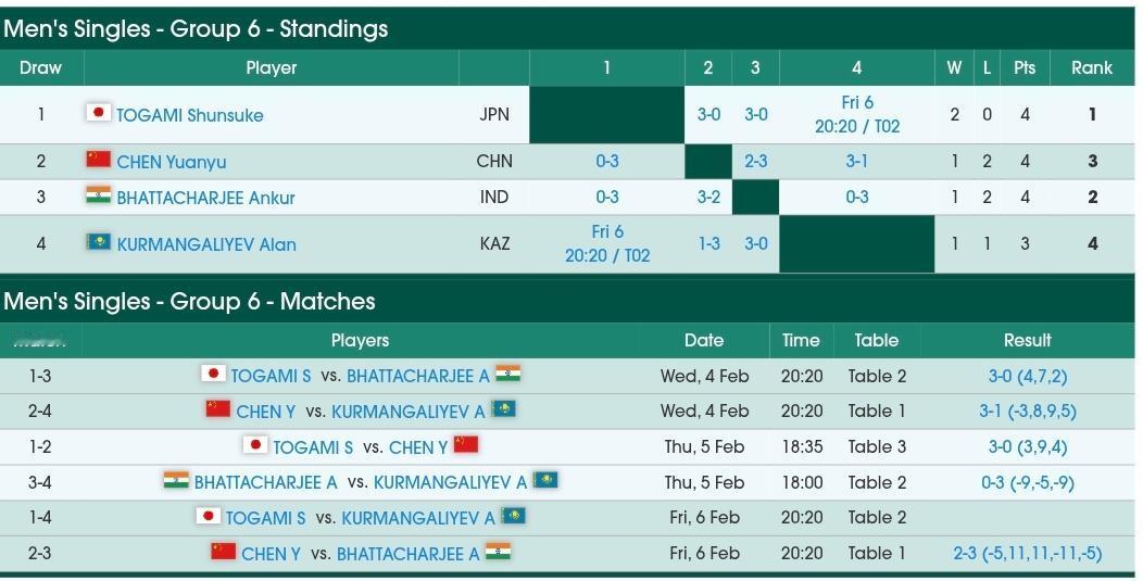 陈垣宇不敌印度选手无缘淘汰赛! 第35届国际乒联亚洲杯正在进行,男子第六组比赛结束,国乒陈垣宇在第三轮小组赛以大比分2比3不敌印度选手巴塔查吉,以小组第三名无缘晋级! 陈垣宇在首轮0比3不敌户上隼辅,只赢了一场比赛,还是差的比较多,强行拔高还是实力不济,还要静下来提升自己技术!