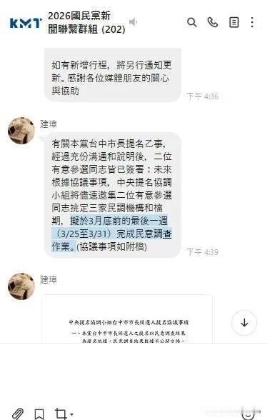 江启臣质疑台中市长初选办法泄密 民调失真 国民党正面回应 有理有据! 国民党台中市长党内提名再生争议。2月6日,针对党中央宣布拟于3月最后一周(25日至31日)进行民调,参选人江启臣公开质疑此举违背了双方签署的“不对外公布民调时间”协议;而国民党组发会则回应称,仅说明大致时程并未违规。 江启臣晚间发表声明,指出协议中明确约定“不对外公布民调执行时间、机构等事项”。他认为,蓝营中央公开具体周次(25日至31日)已违反协议,恐致民调受外力介入而失真,因此要求党部立即澄清。 对此,国民党组发会回应解释,协议原文本就包含“3月底前完成”的条款,此次说明仅是重申“3月最后一周”这一大致范围,并未公布具体的民调机构和确切执行日期,因此“合乎协议内容”。组发会强调,具体的执行档期将在双方选定机构后协调确定,且不会对外公开。 据悉,最终提名人选将依据“政党对比”占85%、“党内互比”占15%的民调结果决定,结果仅公布胜出者。随着双方对协议条款的解读出现分歧,这场关于程序的拉锯战仍在继续。 江启臣做过主席的人,这也太斤斤计较了,最起码私底下先问完蓝营中央,再公开发文质问啊。现在弄的真的很难看。