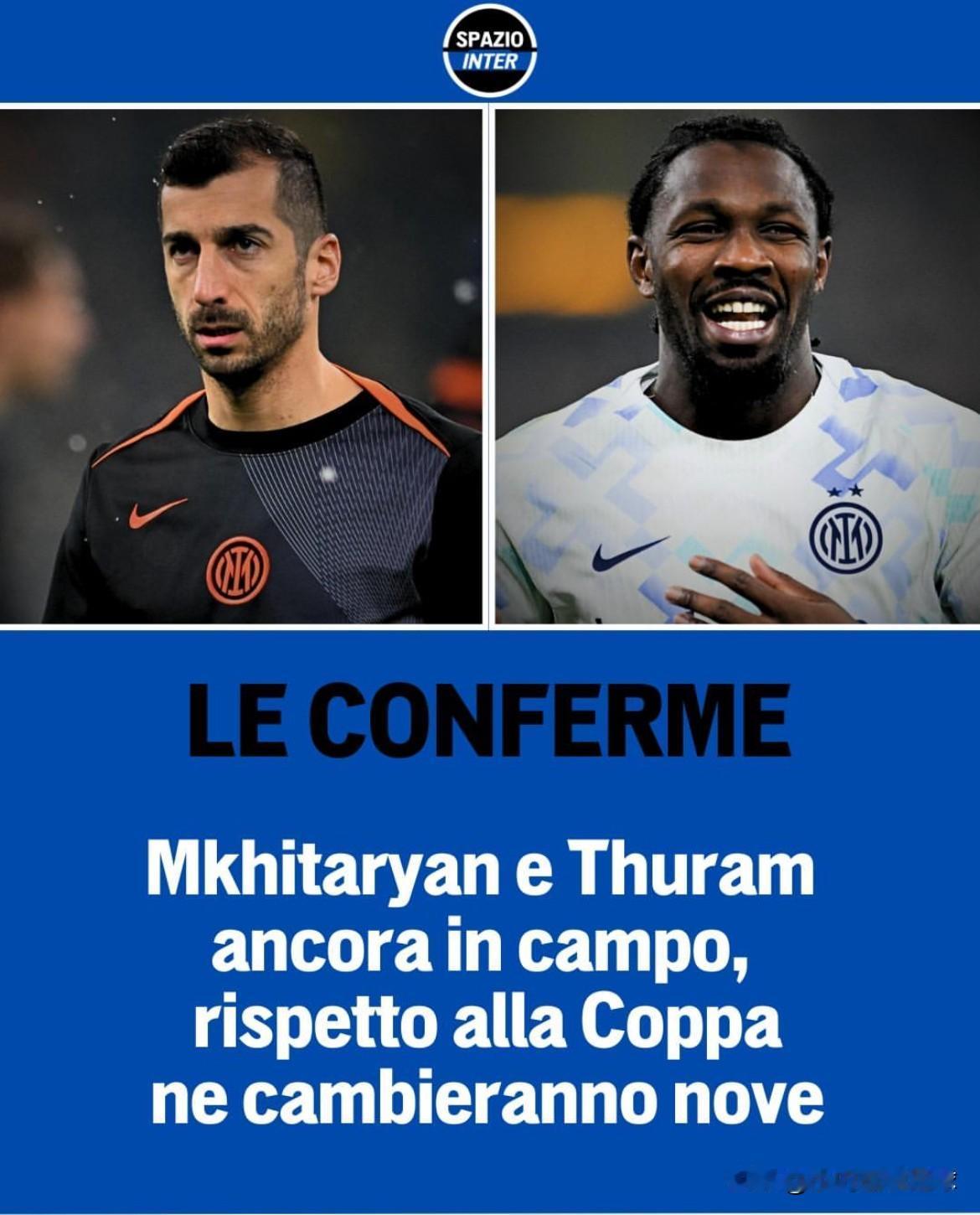 轮换,不断尝试!国米空间:对阵萨索洛,部分主力继续“休假”? 意大利杯的轮换策略奏效了,齐沃准备在联赛中“故技重施”;对阵都灵的比赛:中后场多处人员变动,尤其是两位U23球员的首发,属实惊艳;而本周末联赛客战萨索洛,将继续保持轮换,但可能会有新的调整。 据米体的报道,目前能确定的首发人选只有:姆希塔良和图拉姆。 个人感觉:保稳的联赛,咱还是悠着点吧!实话实说,遇到硬骨头“绿巴萨”,我真有点虚……,近两个赛季的正面交锋:两胜两负,不好说啊! 大家觉得呢?