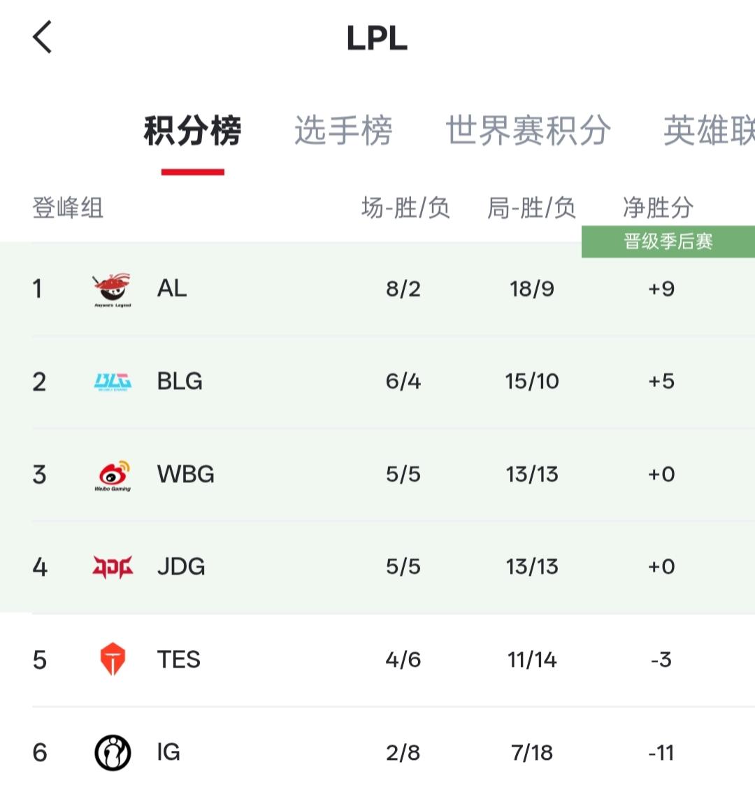 (各位JRs亦可参照文末指引,前往虎扑英雄联盟赛事页查看实时更新的完整LPL战队排名)