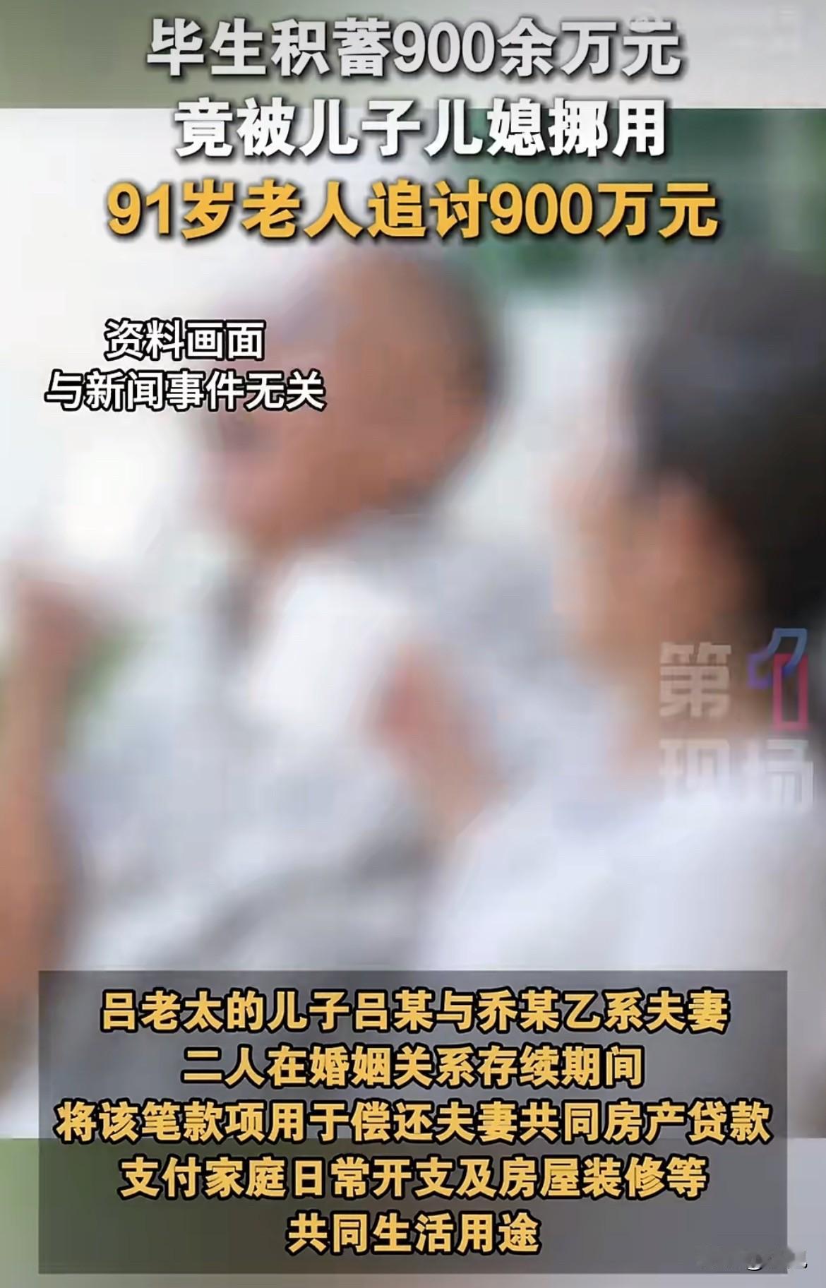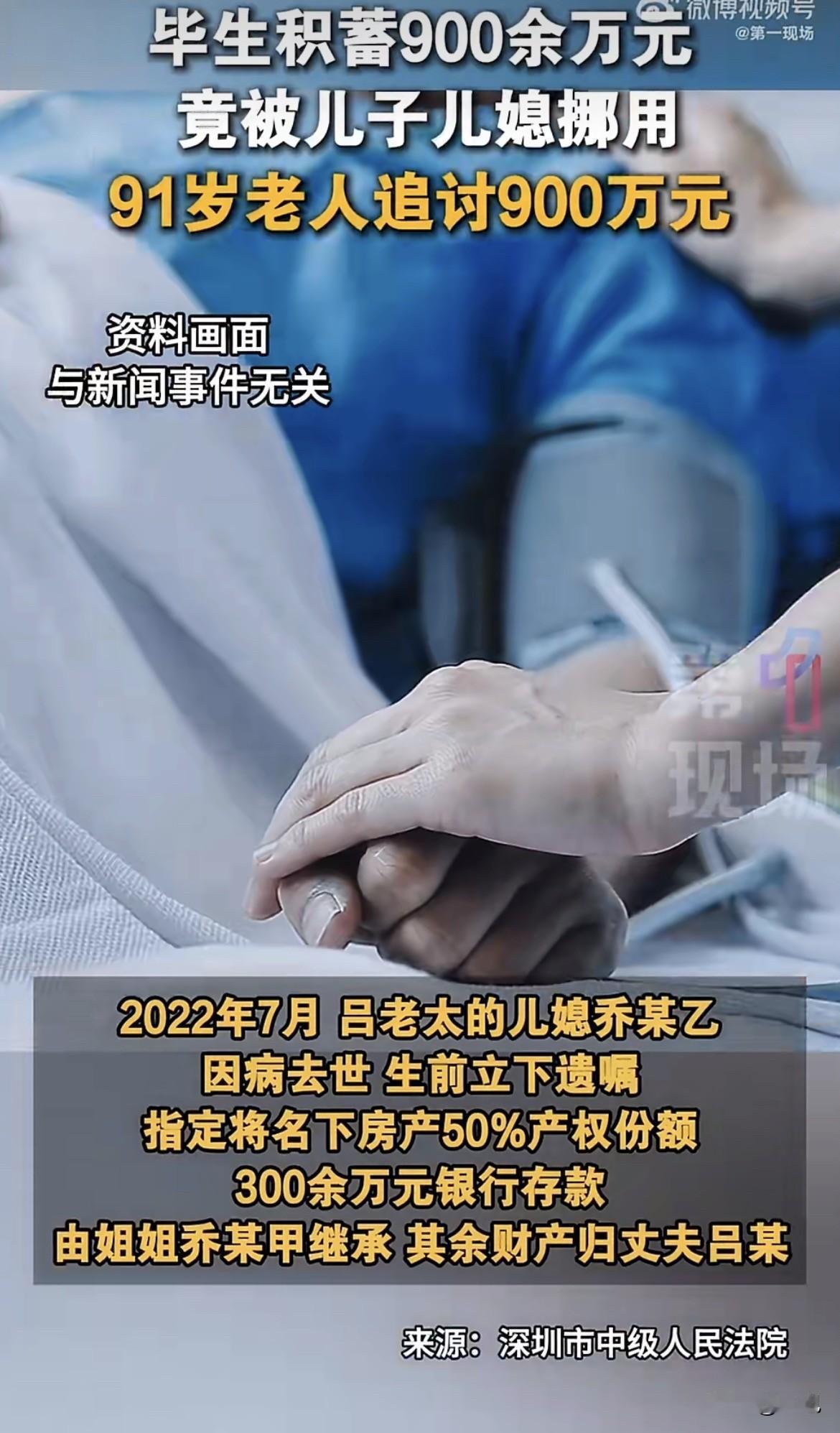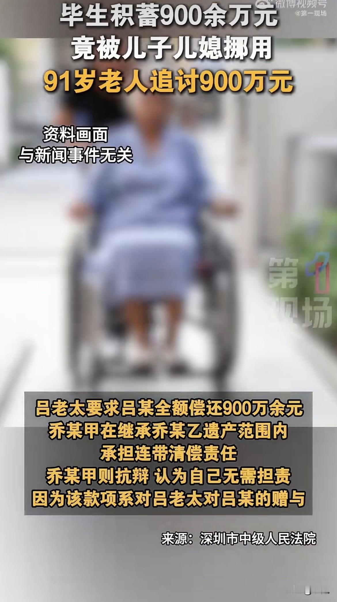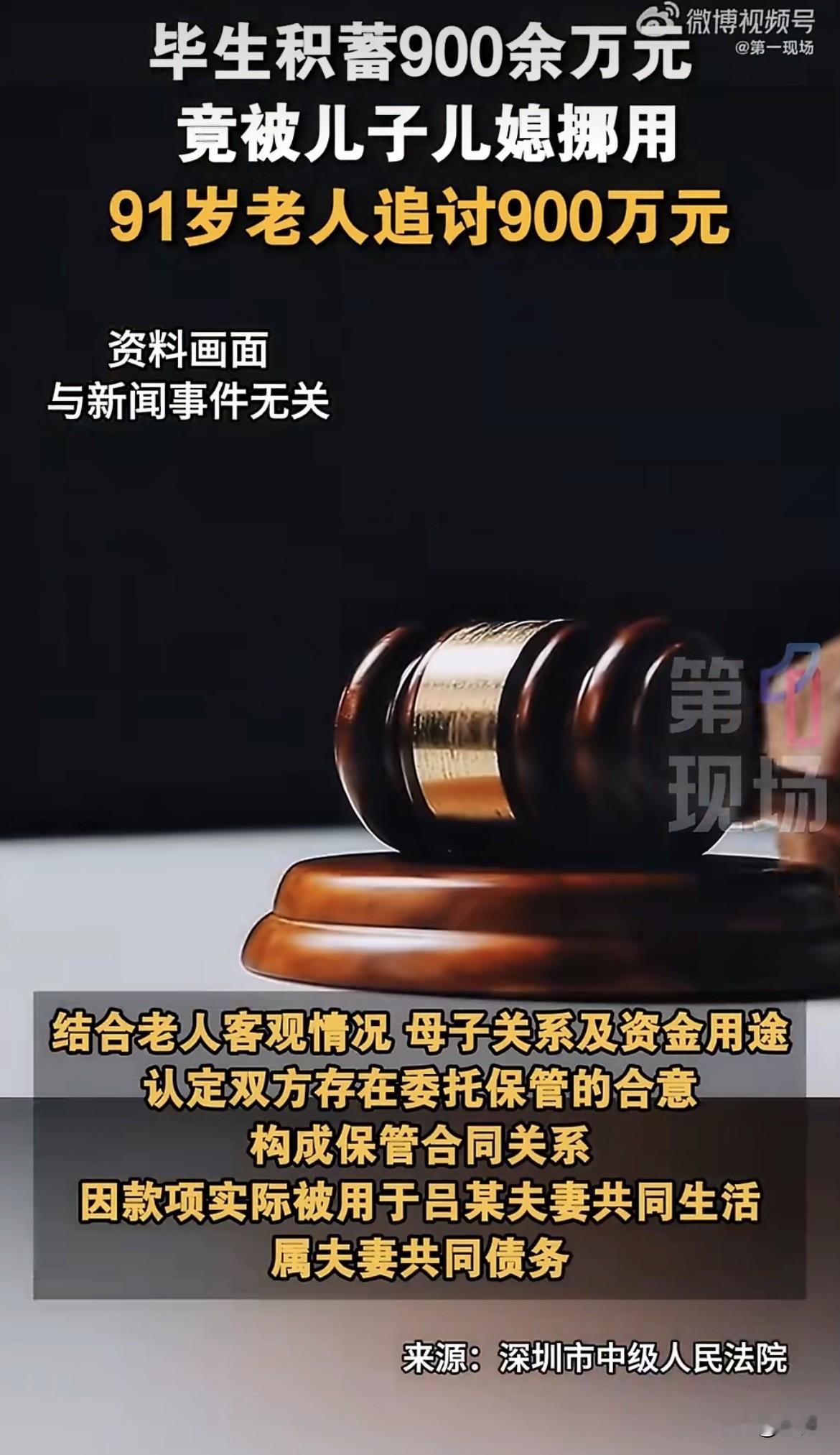91岁的吕老太把900多万转给儿子保管,转头钱就没了。这可不是小数目,里头还裹着卖掉北京房子的钱。老太太年纪大,手脚不便,想着亲骨肉最靠得住。 钱到了儿子吕某的账户,事情就变了味。这两口子也没客气,拿着老母亲的养老钱,填了自己家的窟窿:还房贷、搞装修、应付日常开销,一点一点就给花光了。你说他们当时觉得是借还是拿?可能自己都糊涂了。 风暴是在儿媳乔某乙去世后刮起来的。儿媳生前留了份遗嘱,白纸黑字,把自家一半房产和三百多万存款,指名道姓给了自己的亲姐姐乔某甲。直到这时,吕老太才惊觉,自己那笔巨款早不见了踪影。 老太太一纸诉状,把儿子和那个继承了遗产的大姨子乔某甲,一块告上了法庭。老太太说,那钱是借给儿子的。大姨子立马反驳:这分明是老妈赠给儿子的,跟我继承的遗产有啥关系? 法院的判决,像把刀子,把温情面纱划得干干净净。法院说,一没借条二没借款合意,不算借款。母子俩都一口咬定不是赠与,而且把老人的大额养老钱推定是赠与,也不公平。那是什么?法院拍了板:是保管合同。儿子吕某受母亲委托保管钱财,却擅自用了,违约了,就得还。 关键一招来了:因为这钱被用于他们夫妻共同生活,所以成了夫妻共同债务。这下,继承了妹妹遗产的姐姐乔某甲也跑不掉了,她得在拿到手的遗产范围内,帮着还这笔债。 看明白了吗?这官司打得挺妙。表面是老妈告儿子,但母子俩在“不是赠与”这一点上立场高度一致。真正的矛盾指向,其实是那位拿着遗产的大姨子。通过法律确认这是“夫妻共同债务”,就能把已经流到大姨子口袋里的那部分遗产,名正言顺地“追”回来一部分。 这不是一场单纯的母子反目戏,更像是一场经过算计的家庭内部财产重组。儿子和母亲,很可能是站在同一战壕里。他们争的,不是母子间的对错,而是要把“外人”拿走的部分,通过合法的债务链条,再拽回这个家的核心圈里。 亲情在巨额财产面前,有时候会显露出它冷静乃至冷酷的算盘。法律成了他们拨动算盘的工具。最后,钱能不能全部追回来,得看儿子还有没有家底,更得看那位大姨子究竟继承了多少实实在在的东西。 你觉得呢?这算不算老人和儿子之间的一种默契?家里碰到这种事,到底该怎么处理才不留后患?