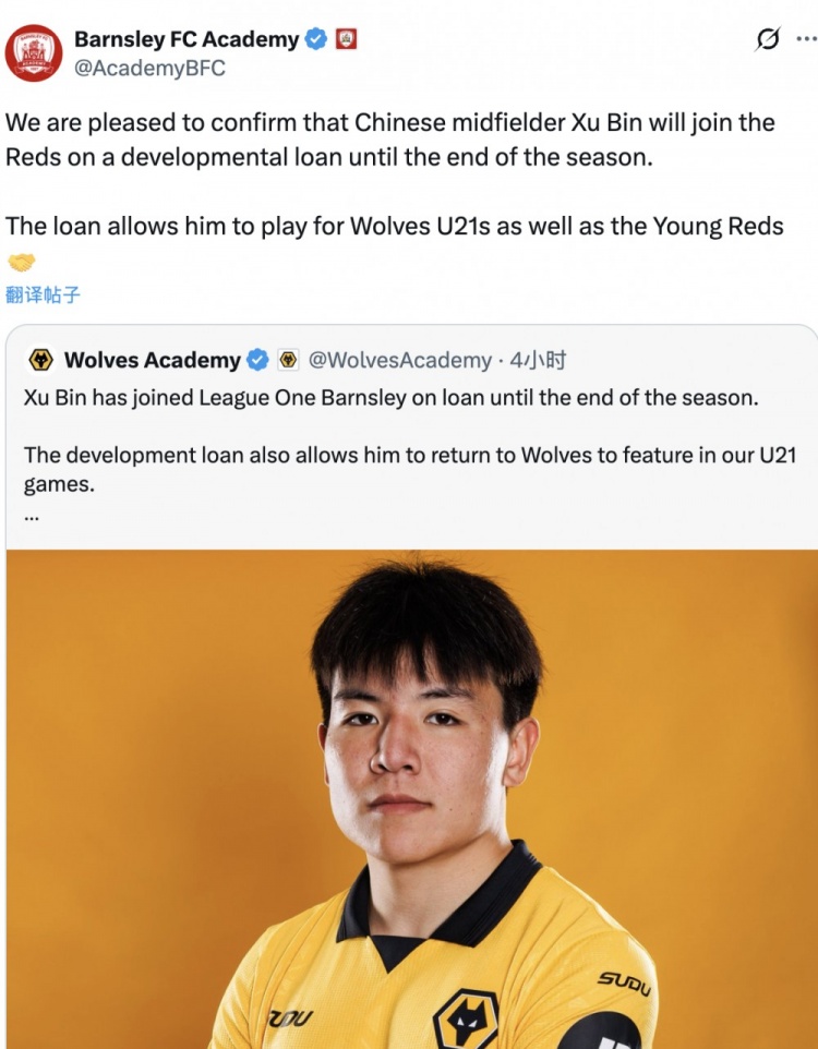 白衣加菲 2 2026-02-06 23:17 The loan allows him to play for Wolves U21s as well as the Young Reds 这句话意思是可以代表狼队u21和巴恩斯利青年队,还是只能代表这两个?