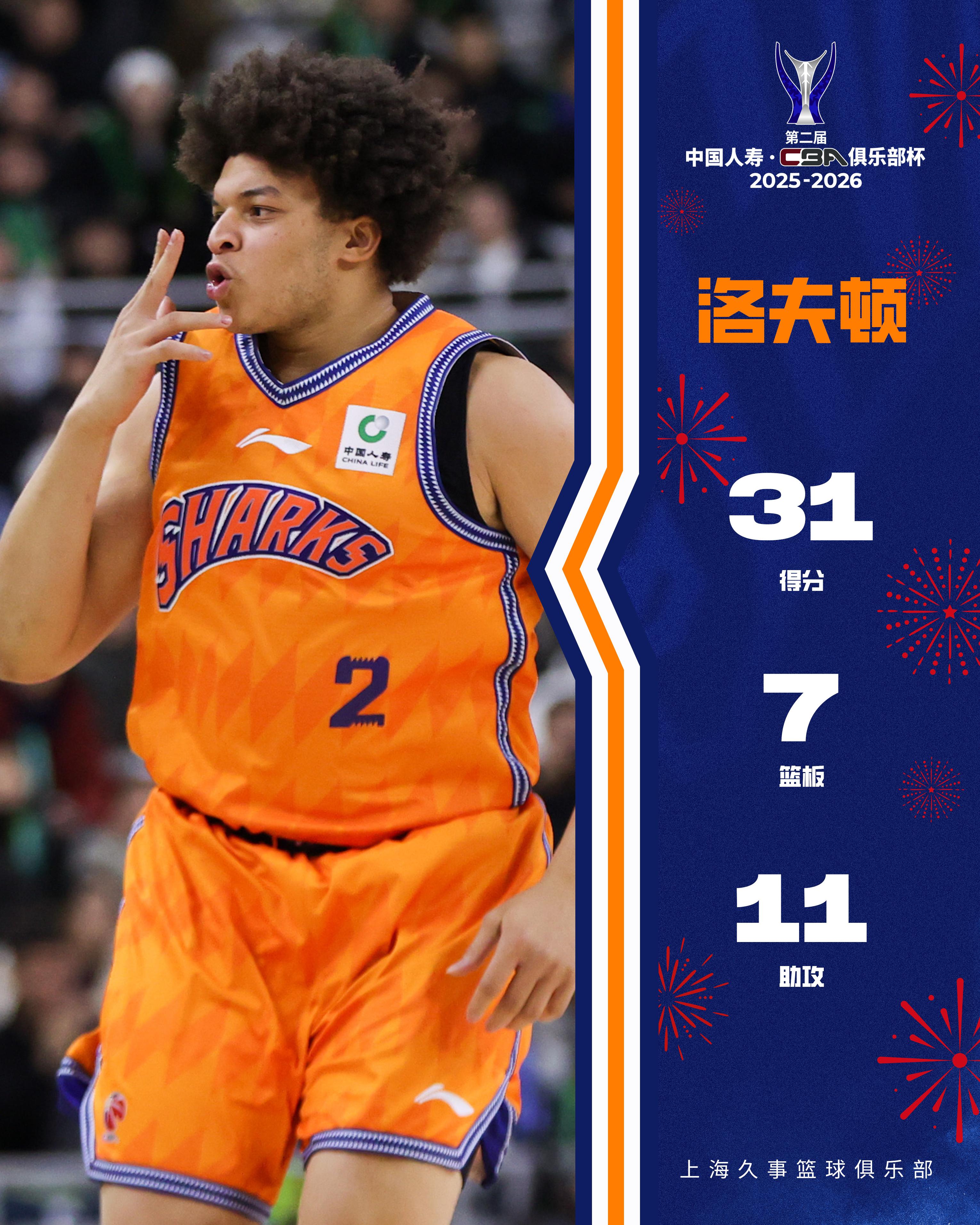 赛后,上海男篮社媒晒洛夫顿数据海报。