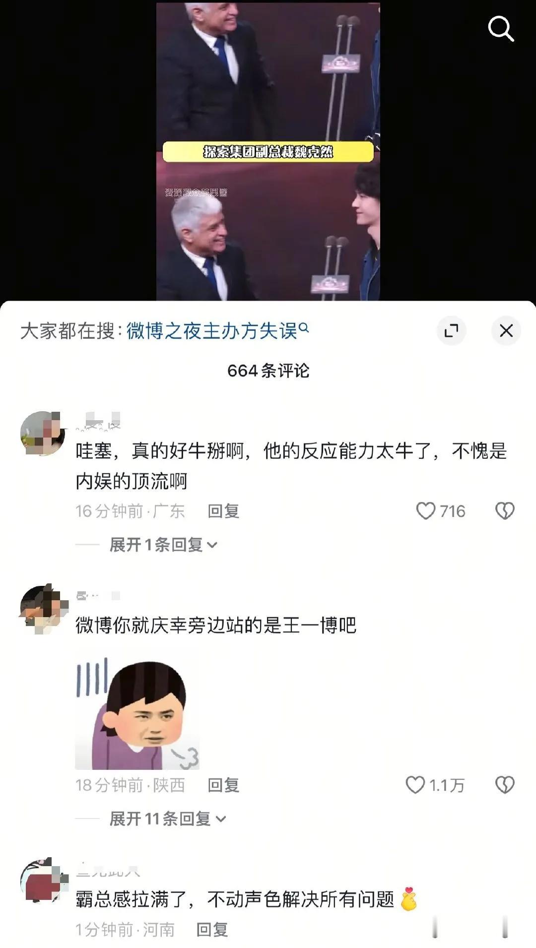 王一博救场让魏克然发言这举动大受路人好评,在🧣之夜会场的为他叫好的也不止ibo