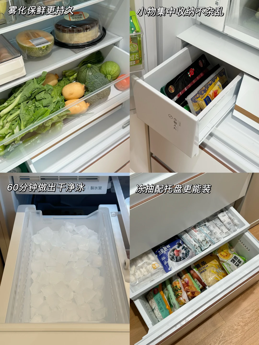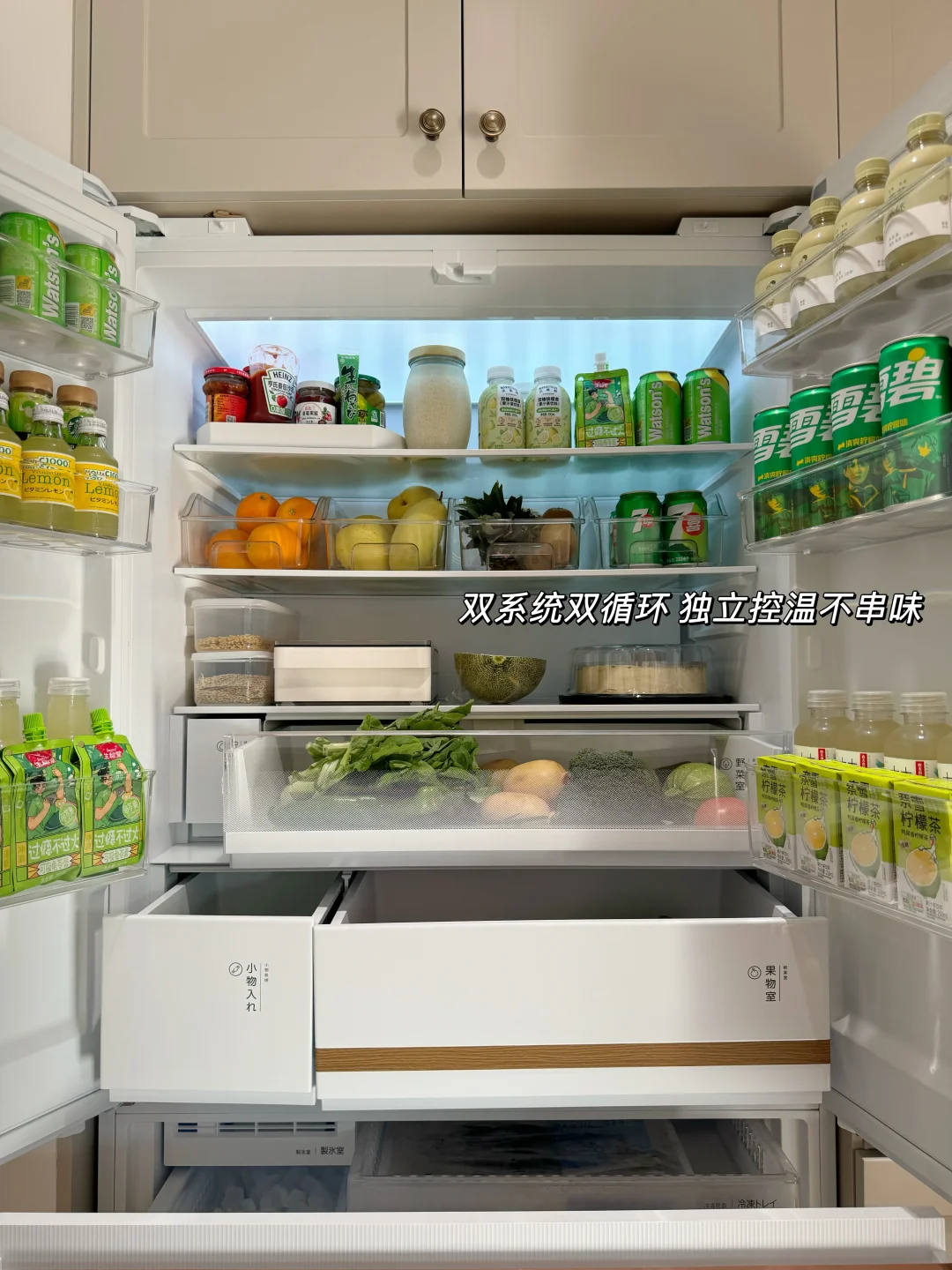 它还是双系统双循环,冷藏冷冻独立控温,五花八门的食材放一起也不怕串味,就很贴心~