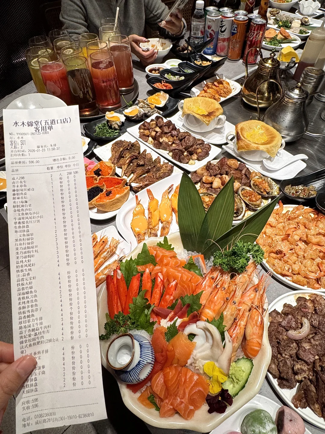 来五道口直奔这里!!速吃!北京的自助餐请都按这个标准卷起来! 菜品200多种!所有牛肉海鲜主食小吃水果甜品随便拿,厚切菲力牛排、鹅肝、三文鱼、凤尾虾……铁板烤得汁水丰盈,不管是蘸料还是空口吃都很妙! 真的随随便便吃回本!!!叫:水木锦棠)
