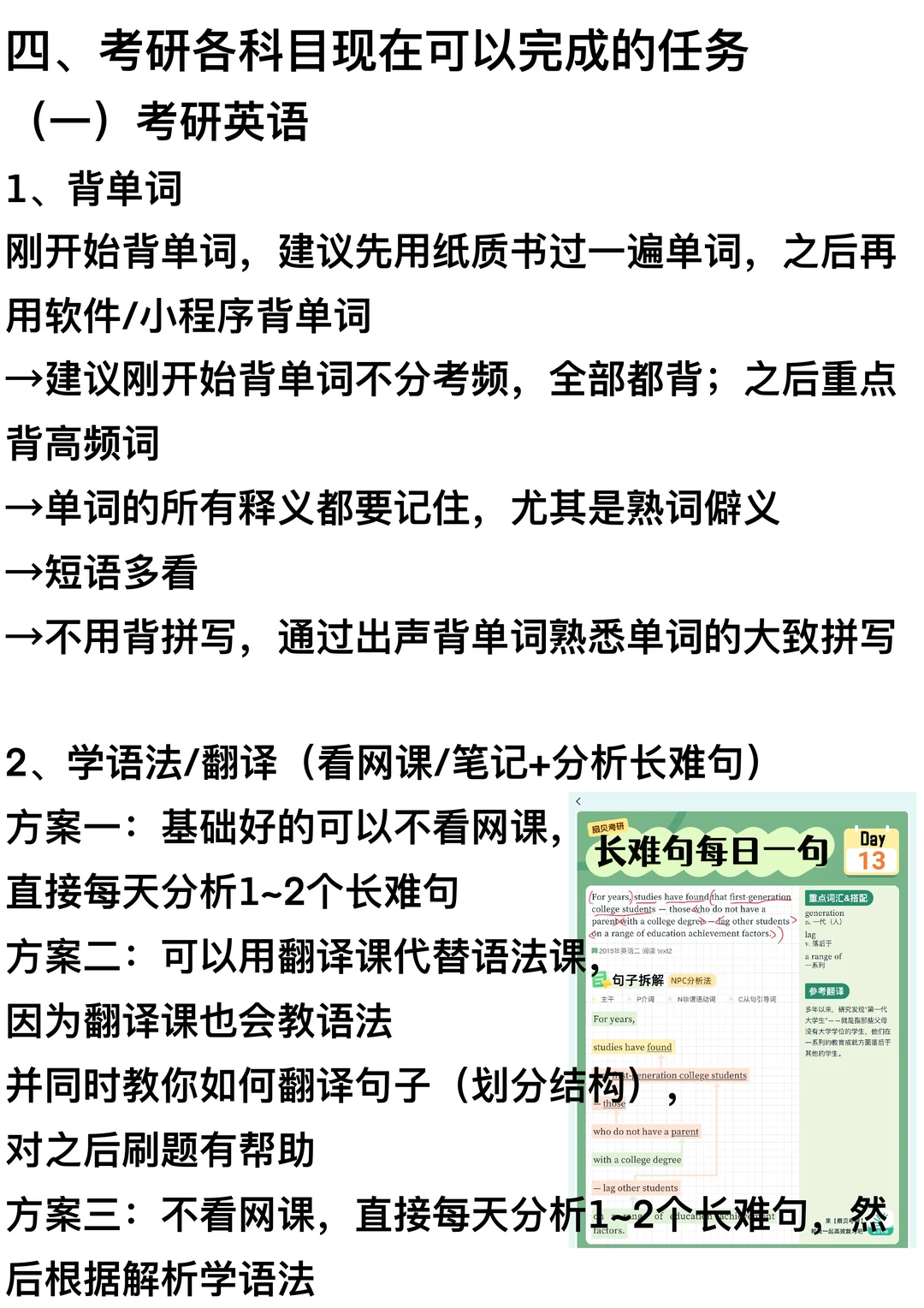 方案一:基础好的可以不看网课,直接每天分析1~2个长难句
