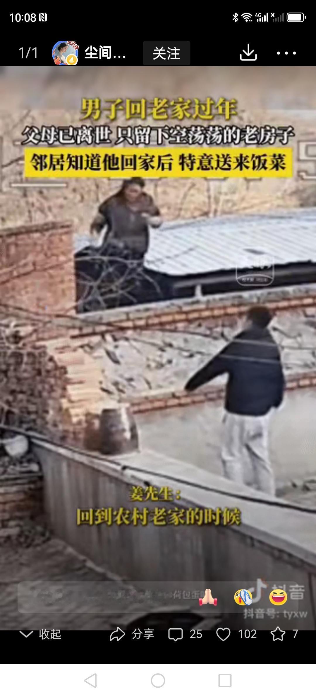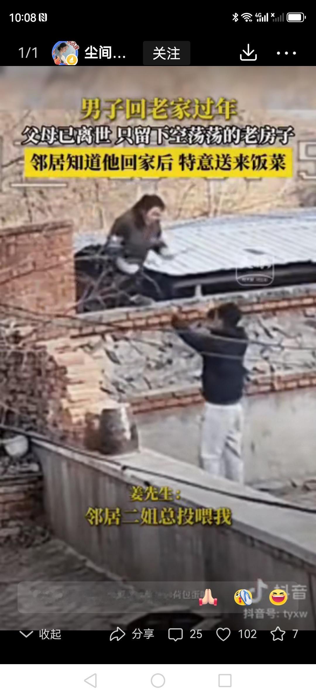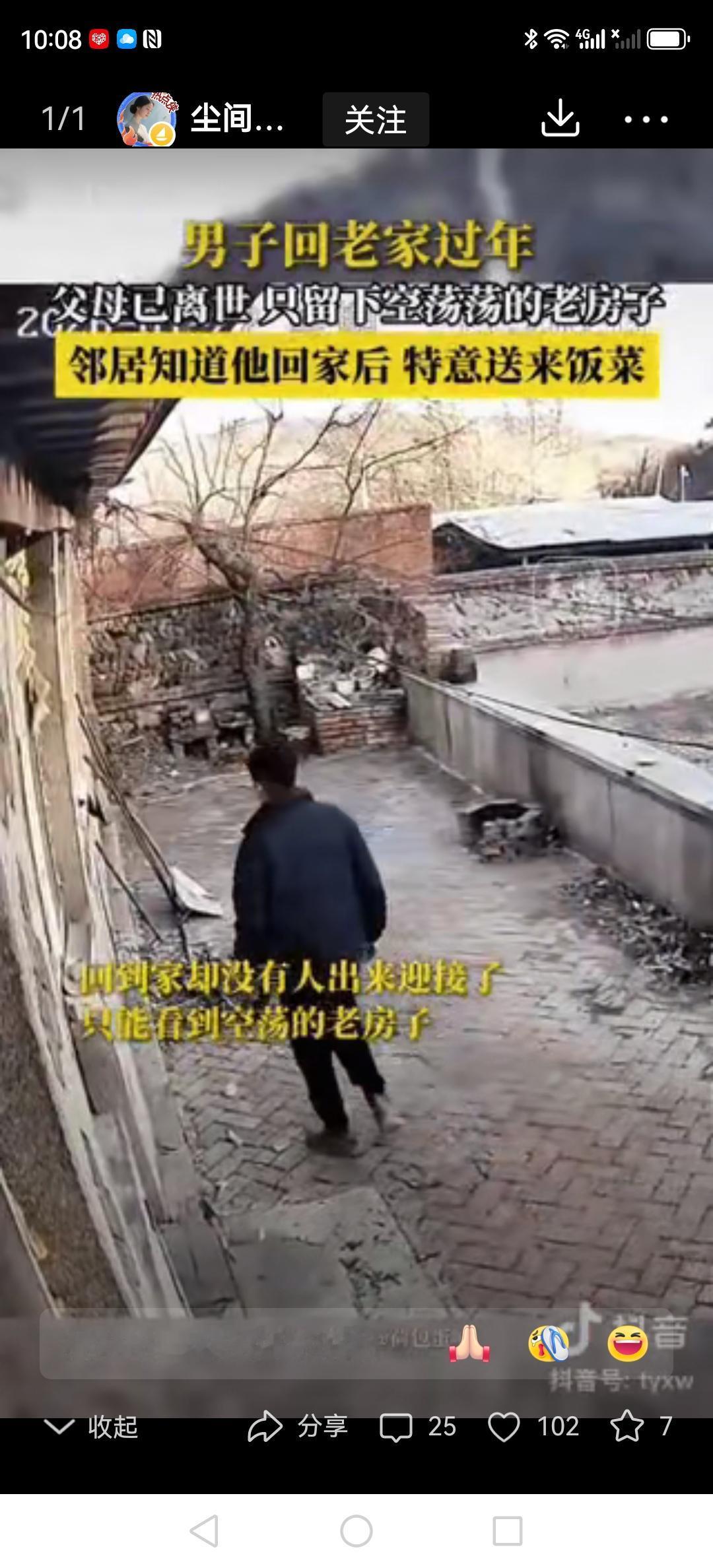 心里一酸!男子开着车赶回老家过年,可爸妈早就不在了,老房子冷冷清清,没人像以前那样笑着出来接我。正心里堵得慌呢,邻居二姐端着一碗热乎饭菜过来了,笑着说:“怕你路上饿坏了,快趁热吃!”他眼泪一下子就忍不住了——这世上,原来还有人惦记着我啊。 院子里静悄悄的,车轮滚过地上的落叶,沙沙响得特别清楚。他盯着那栋熟悉的老房子,手里的钥匙都快被我攥出水印了:再也没人像以前那样笑着从屋里跑出来,喊一声“回来啦”。窗户上的窗花还是去年过年贴的,只是再也没人念叨着“该换个新的了”。 院墙上突然传来个熟得不能再熟的声音:“饿不饿?赶紧趁热吃!”邻居二姐踮着脚,从墙那边把两碗冒着热气的饭菜递过来。酸菜炖肉的香味一飘过来,他眼泪一下子就掉下来了。原来爸妈不在了,还有人记得我爱吃啥,还记着我啥时候回来。 这堵矮墙虽然把两家隔开了,可三十年的情分早就连在一起了。小时候翻墙偷她家的枣被她骂,现在翻墙给我送热饭的,还是她。你看,这故乡啊,不就是总有人把你放在心尖尖上吗?就算爸妈不在了,那盏总为你留着的灯,也会换种方式亮着。 今年过年,你回家了吗?那个总把你放在心上的人,是不是还在老地方默默等你呢? -search.byteimg.com/img/labis/e3964b3295a980f14c865fe1969859c4~480x480.JPEG