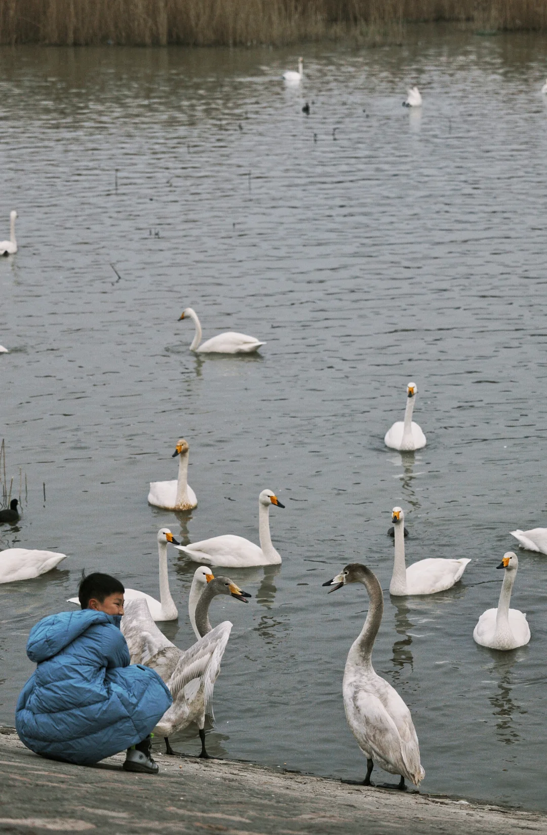 2. 穿浅色衣服更容易吸引天鹅靠近(亲测黑色羽绒服被嫌弃了😂)