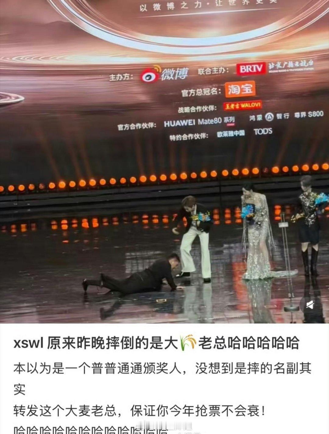 emmmm原来昨晚在台上丝滑摔跤的人是大🌾的老总啊,网友调侃真的是丝滑全用在自