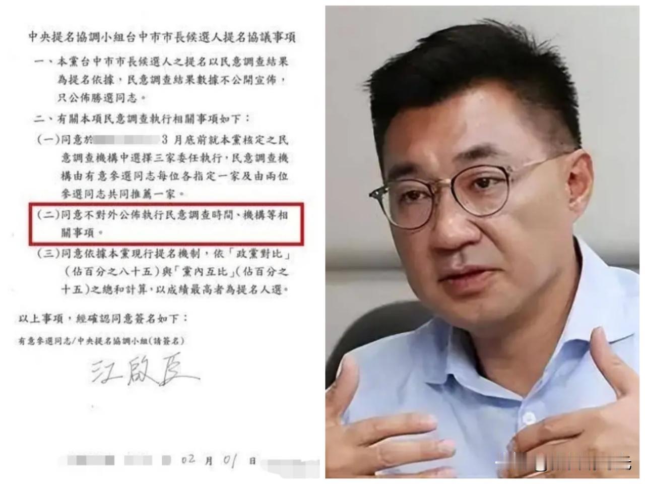这个瓜吃的有点大了,国民党中央前脚刚宣布针对国民党籍台中市长候选人协调事宜将于3月底进行,并且两位当事人都同意此项协议,而且当事人之一的杨琼璎对此也表示认同,后脚另一位当事人江启臣就对此表达不满,认为国民党主席中央违法协议内容,江启臣表示国民党中央以及杨琼璎违背提名协议“同意不对外公布执行民意调查时间、机构等相关事项”这项条款,江启臣罕见对此动怒,从曝光的协议内容来看,确实是违反了协议,但是有一点就是将于3月底最后一周进行,并没有确定哪一天进行,照此看来,还不算违法协议,对此,您怎么看?