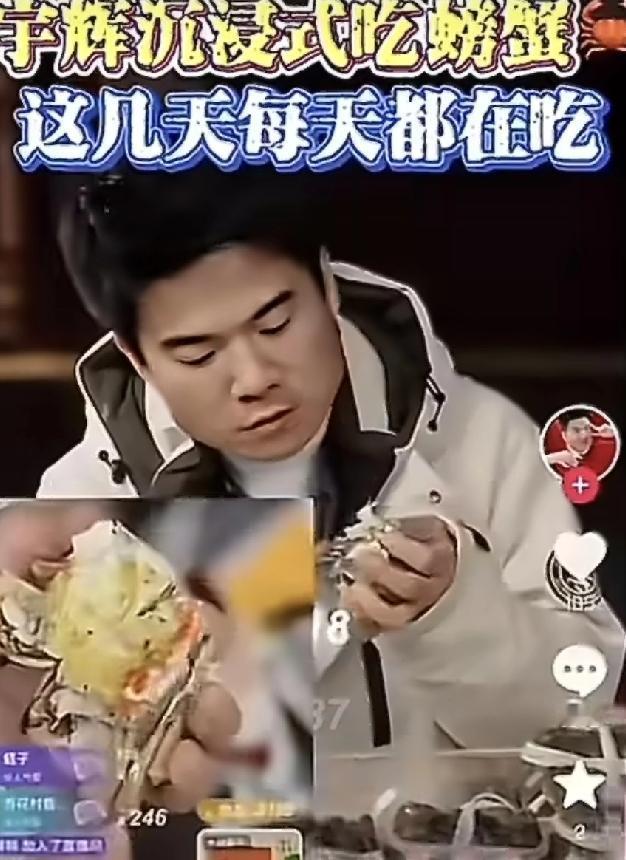 董宇辉和🦀的「进化论」我是第一次看到,还真是符合他的人设。[大笑] 以前在甄选,自己对🦀过敏,一摸都浑身痒🉐难受。 后来当了老板,在直播间咔咔吃啊,过敏?不存在的! 以前,「我说的是带壳的小🦀和小🦐不能吃,吃了过敏」 后来,管它带不带壳,逮着螃蟹就咔咔一顿造。 这不就跟卖春联一样吗? 以前粉丝让他带货春联,宇辉说,「这种东西不用在直播间买,去街上买感受下人间烟火气」 现在,「春联,上🔗!」 要说董总最不会塌方的人设,大概就是虚伪的人设吧[笑哭]