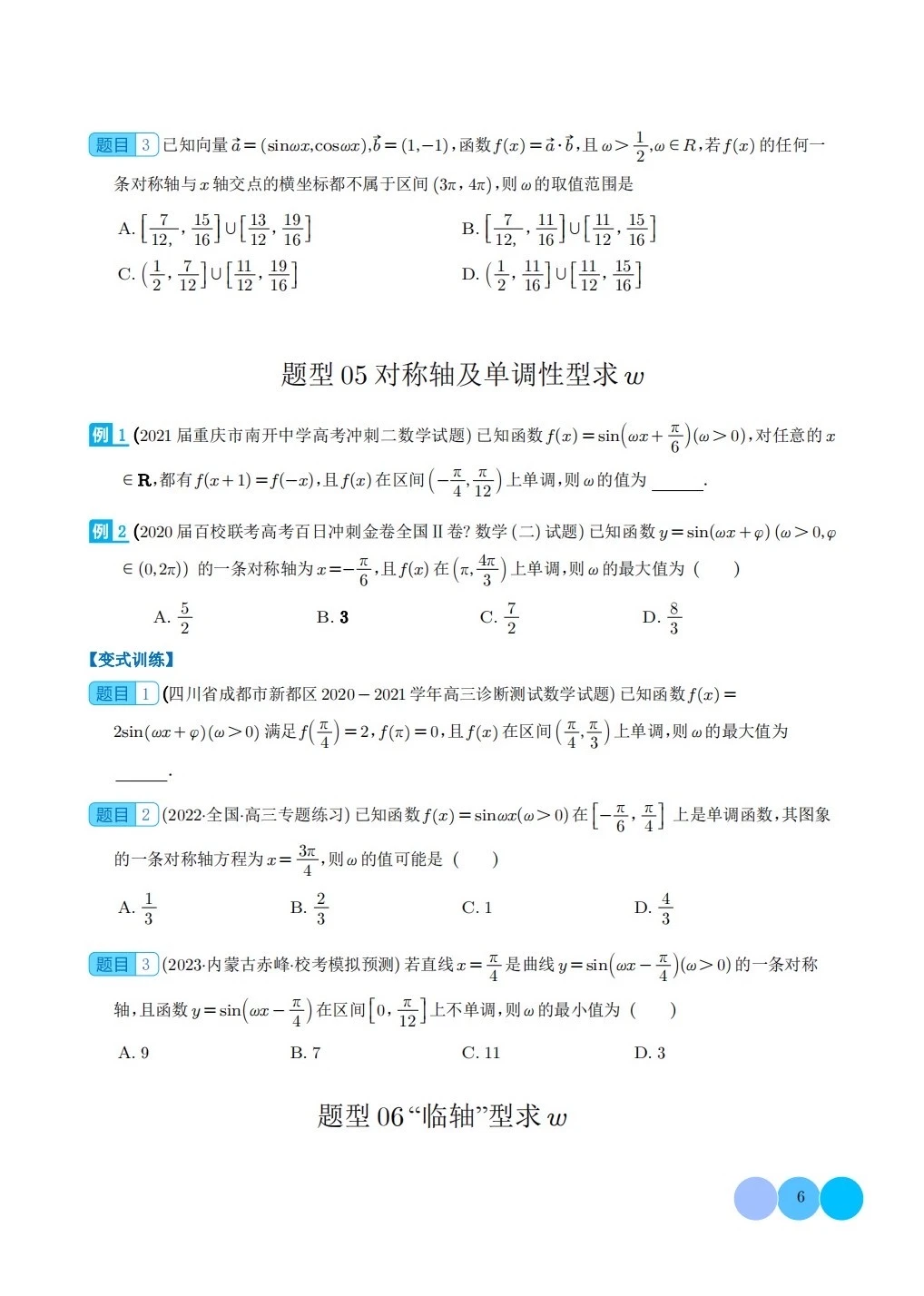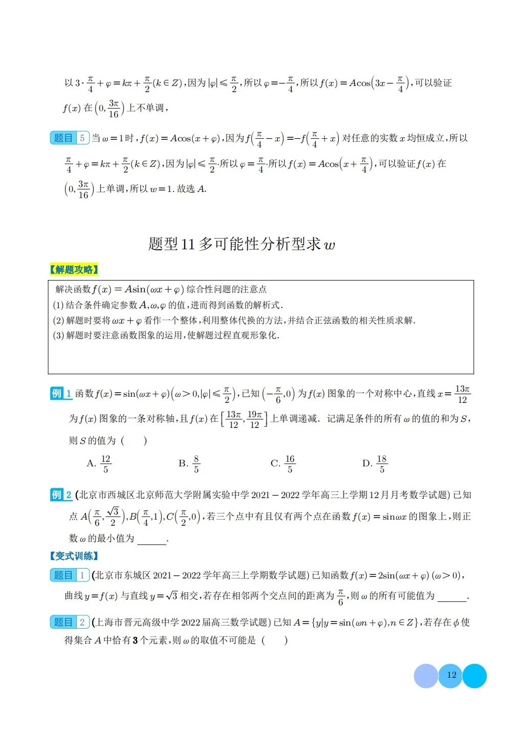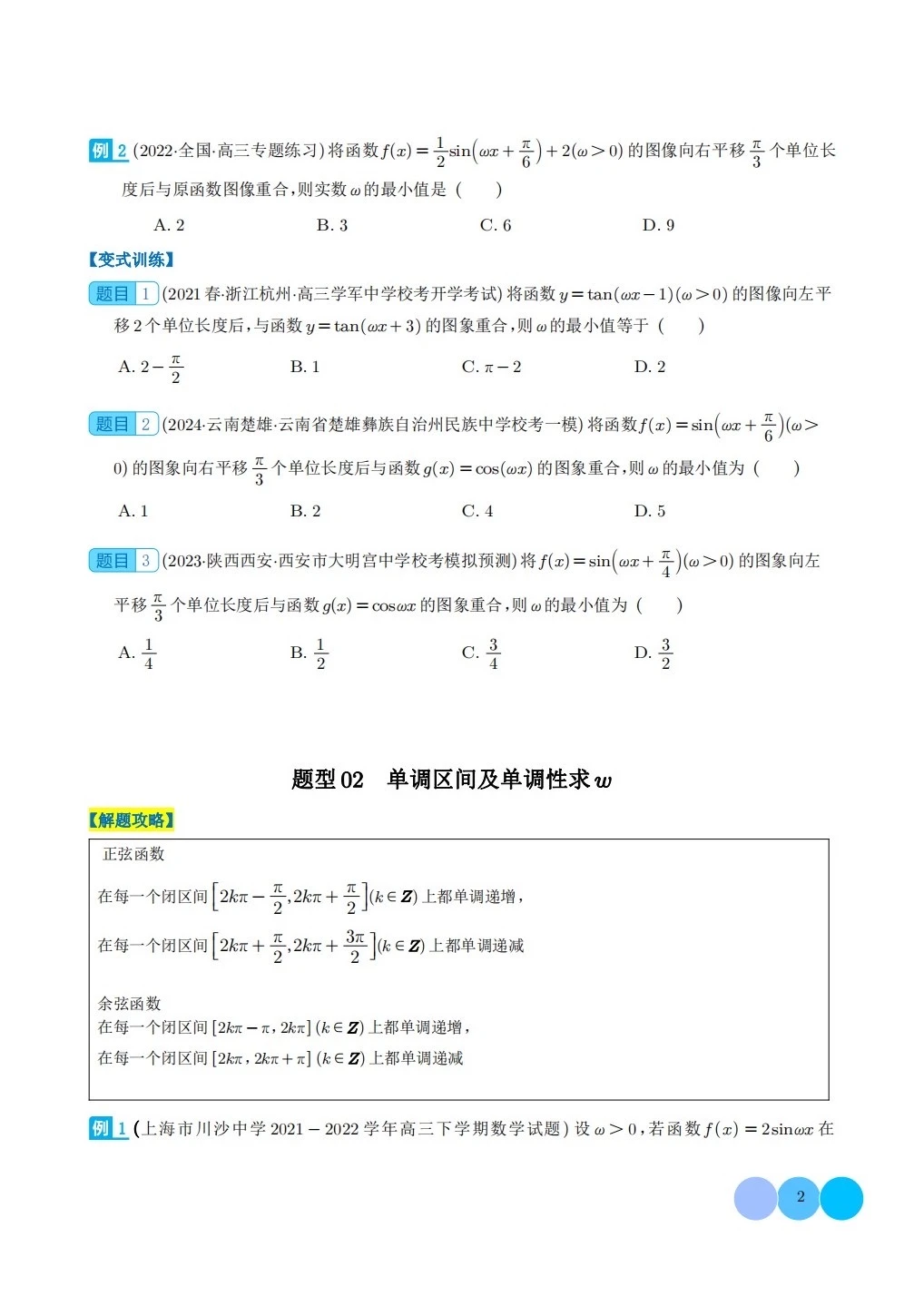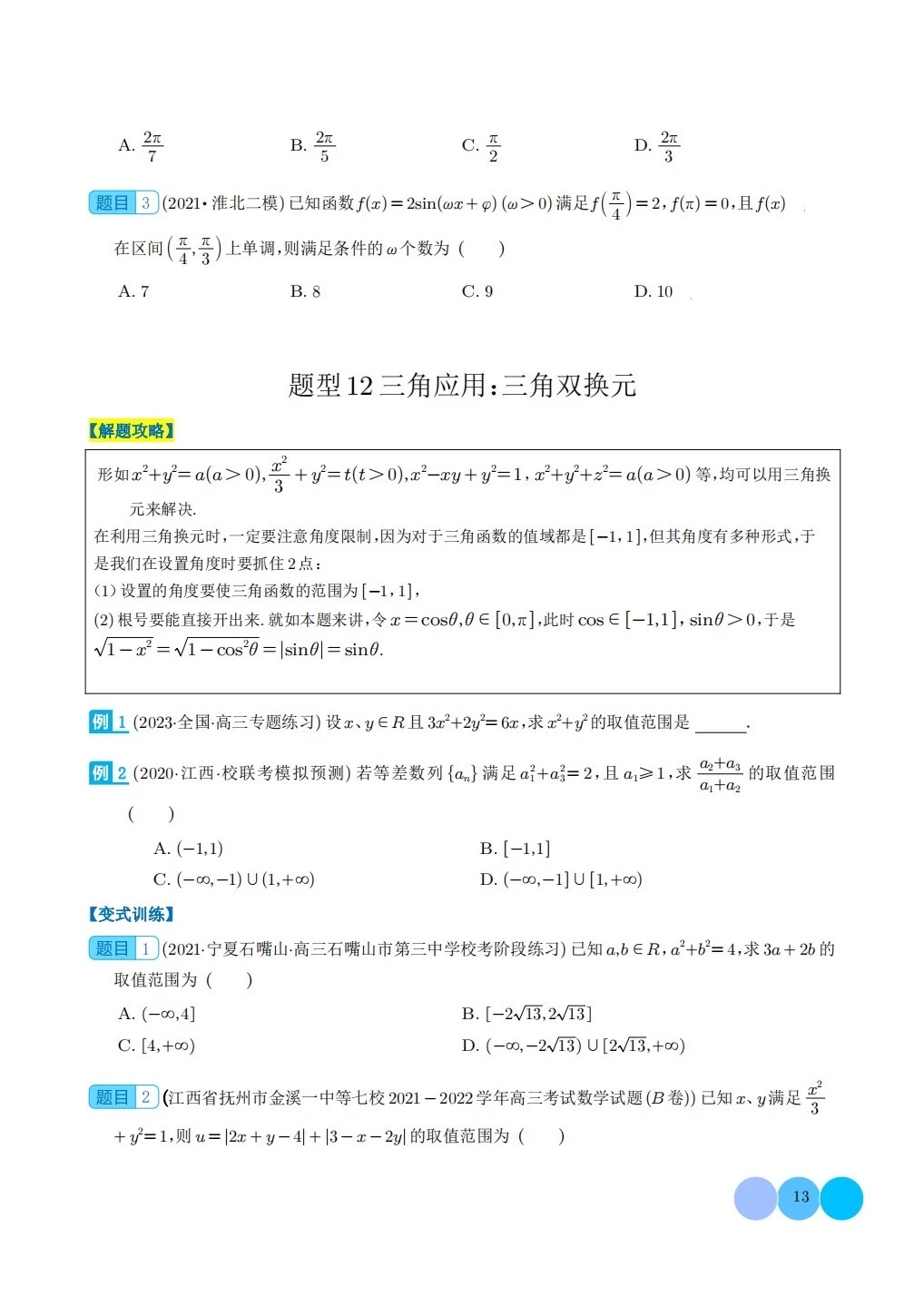 三角函数求w类型及三角换元应用归类