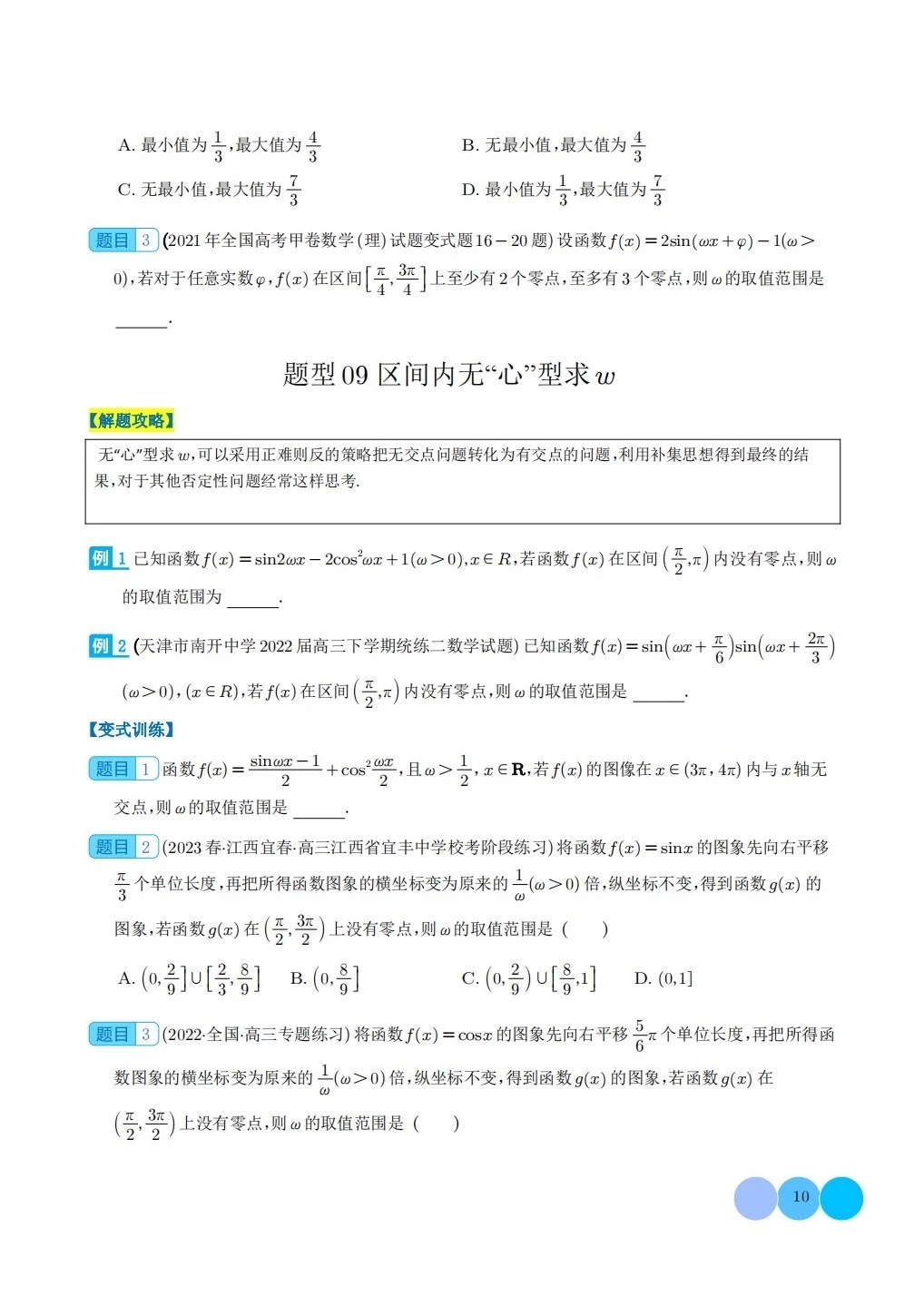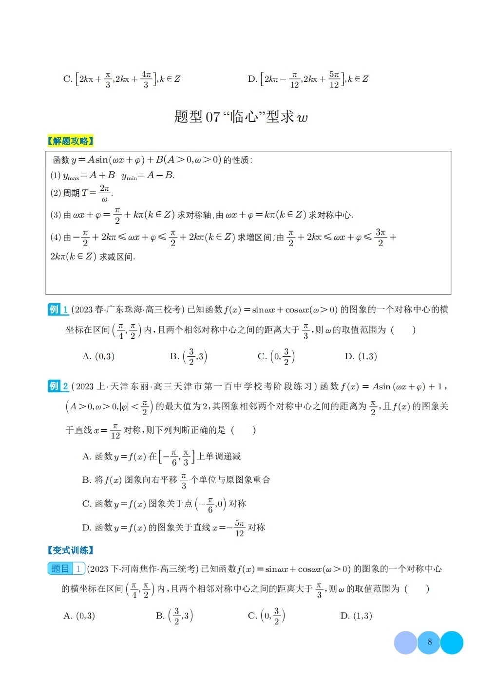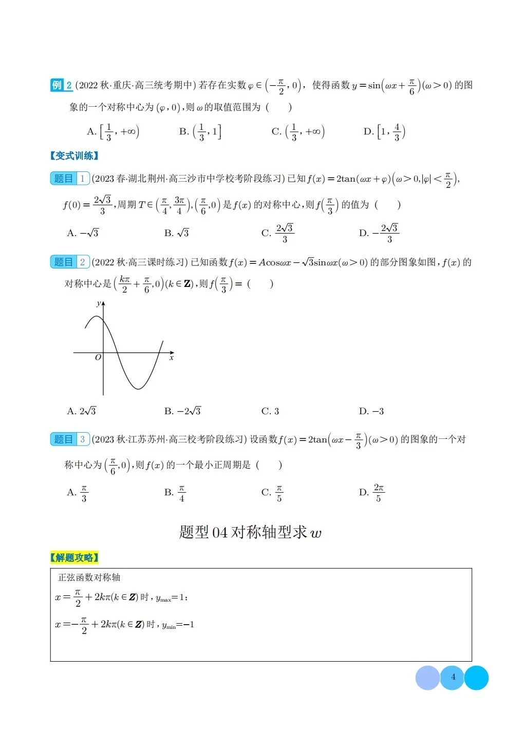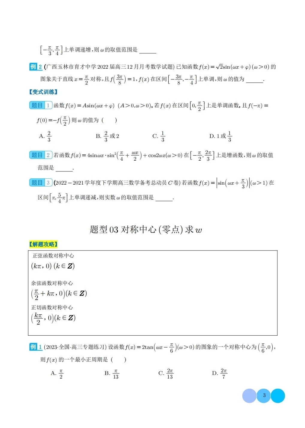 三角函数求w类型及三角换元应用归类