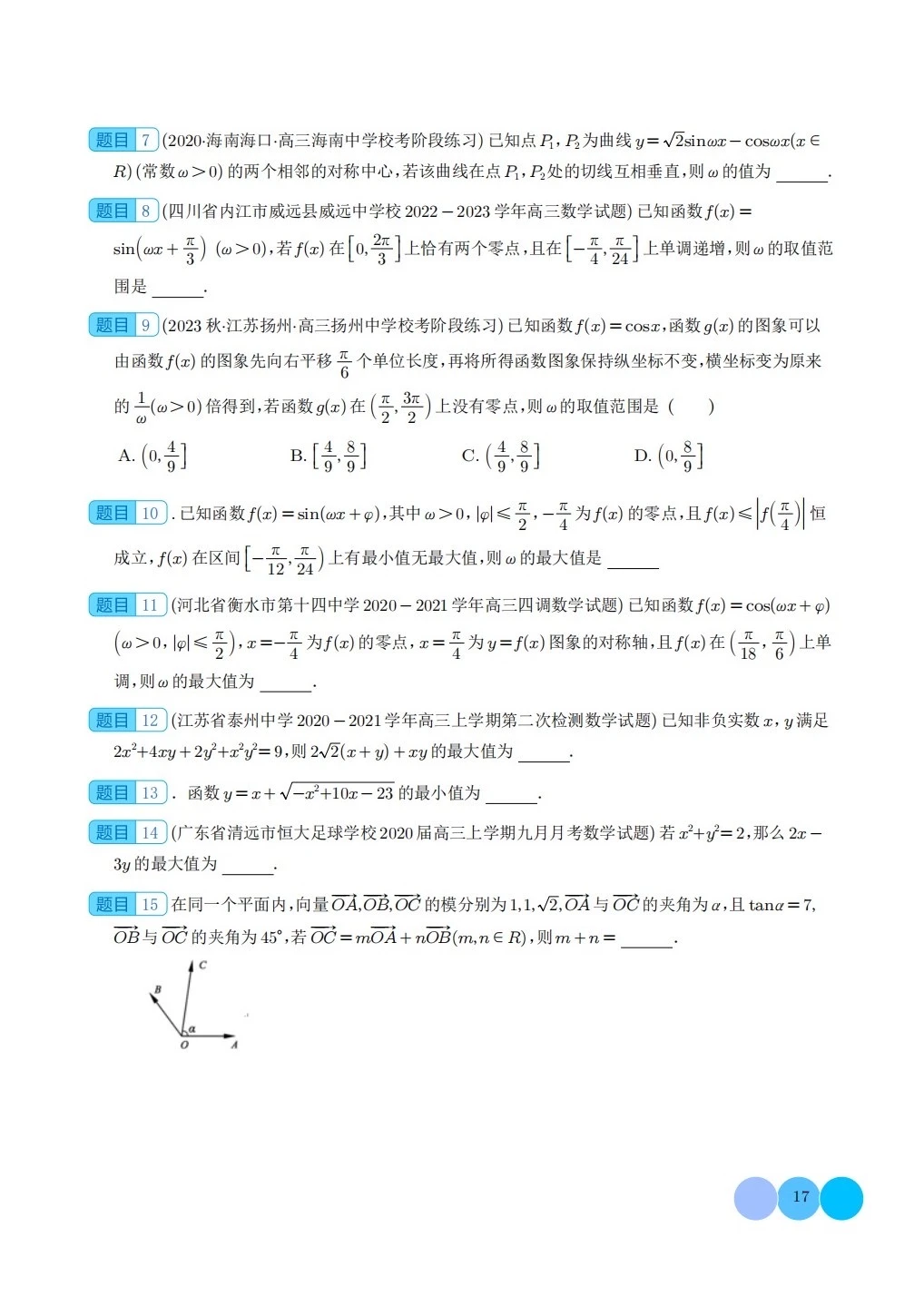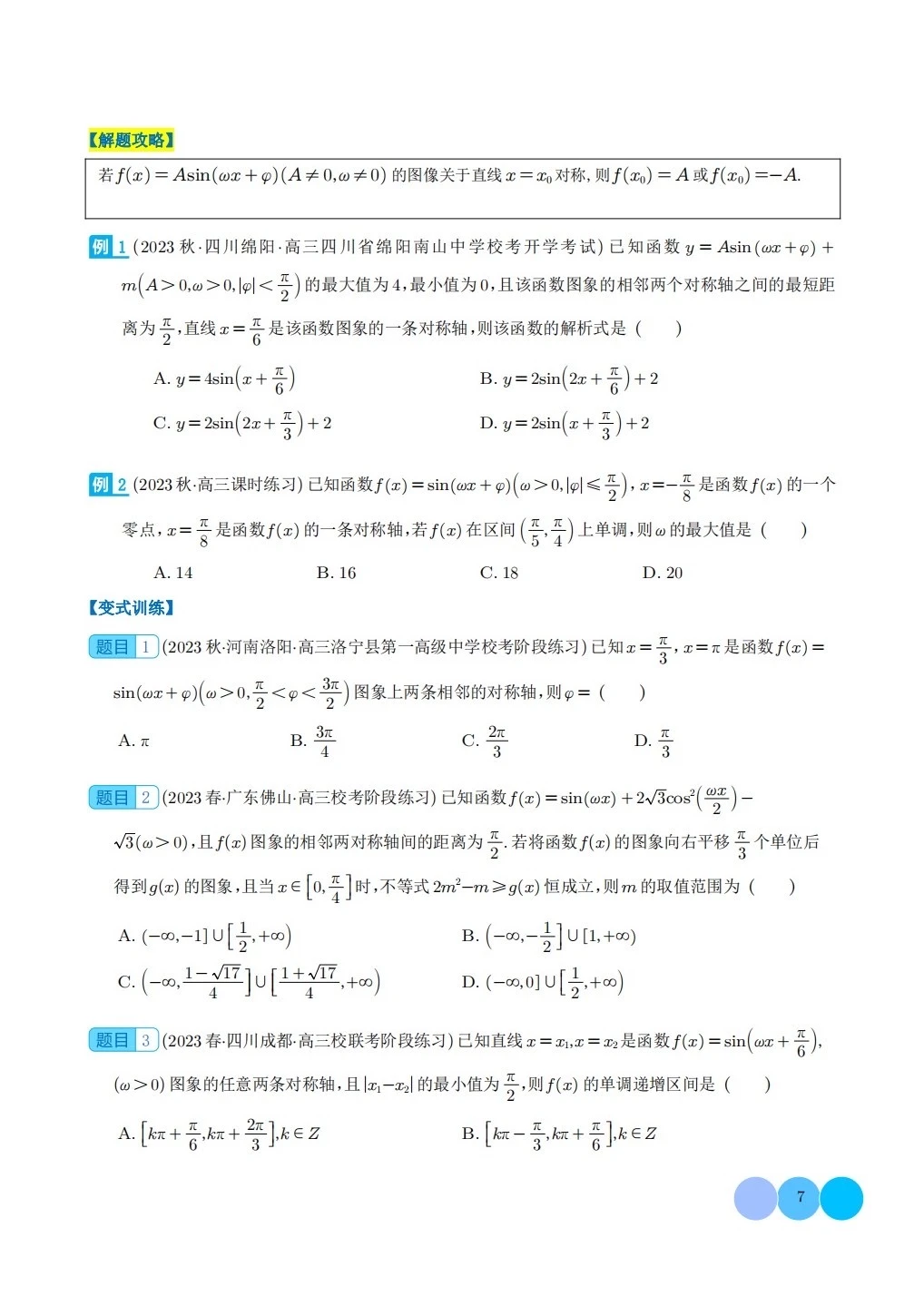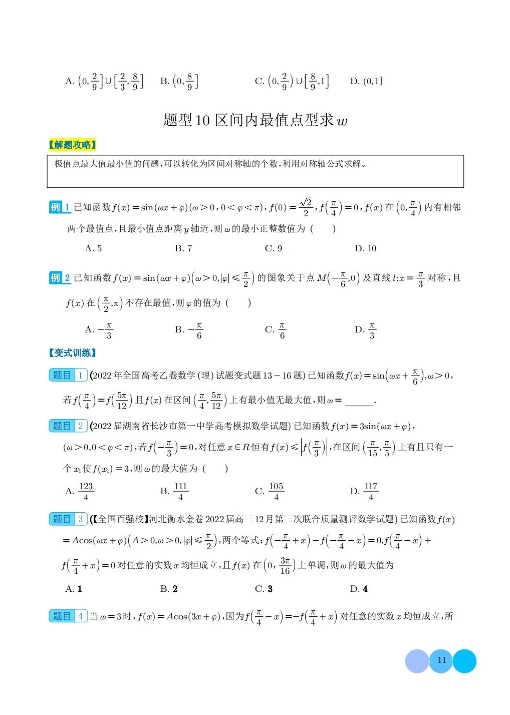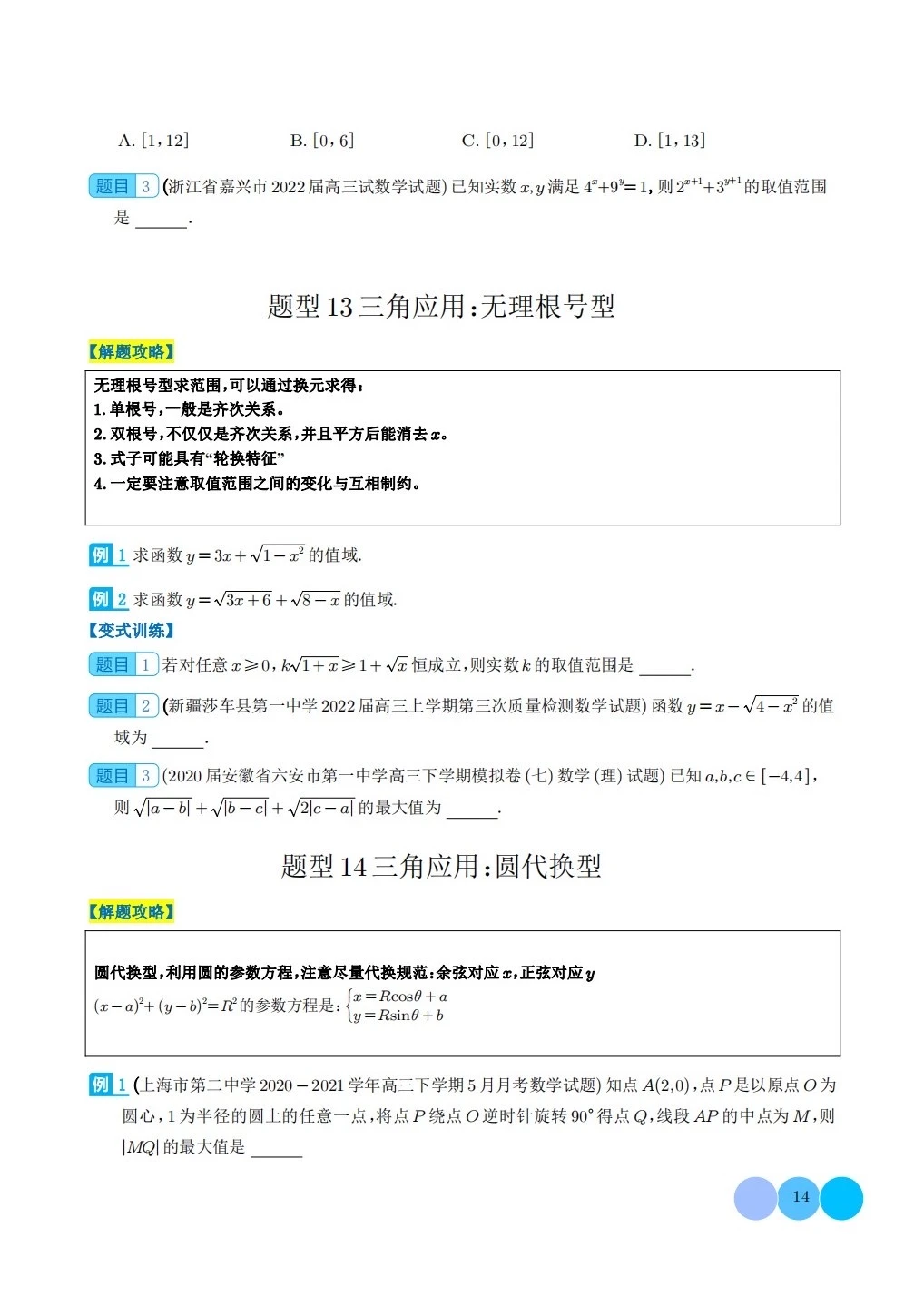 三角函数求w类型及三角换元应用归类