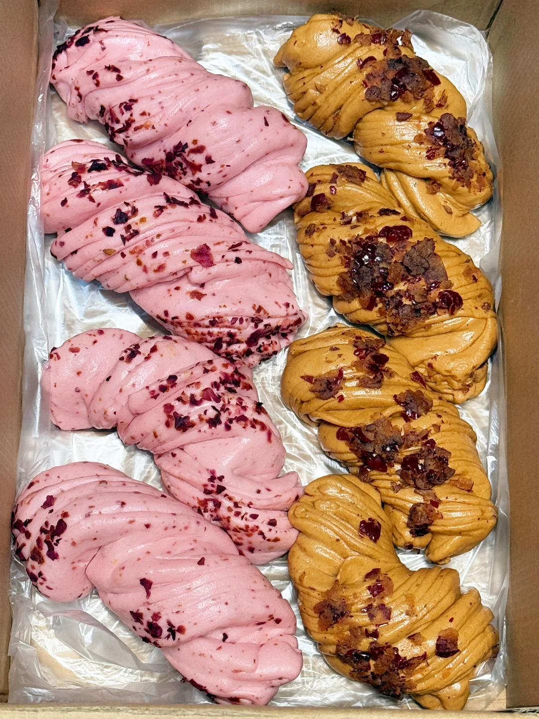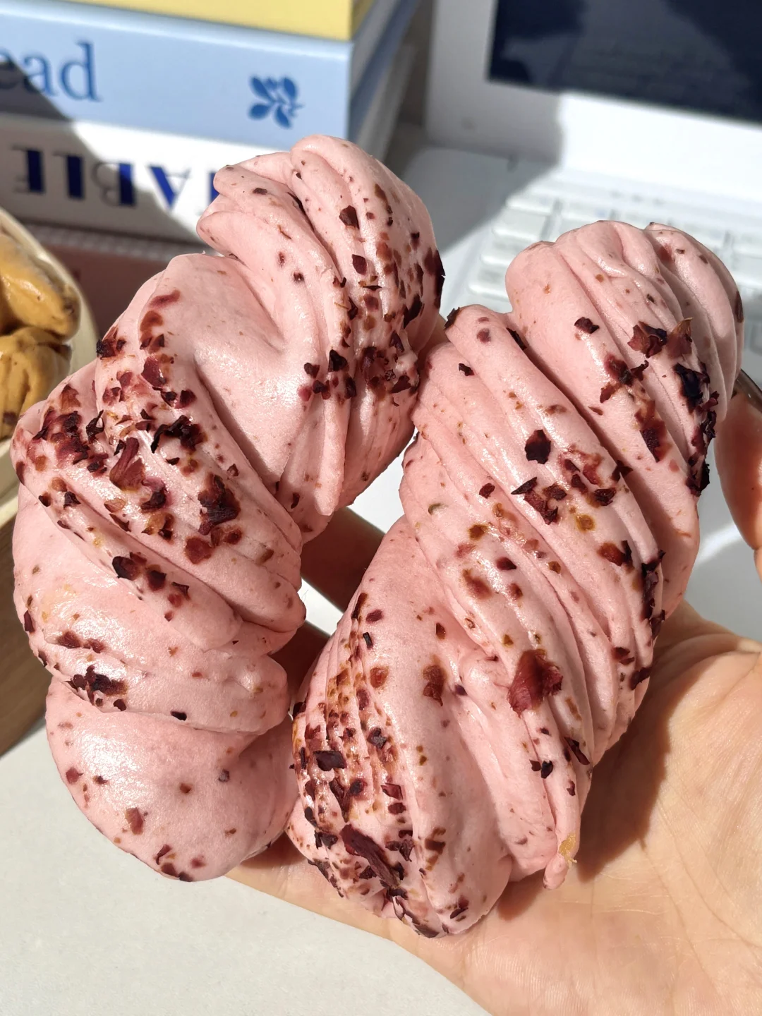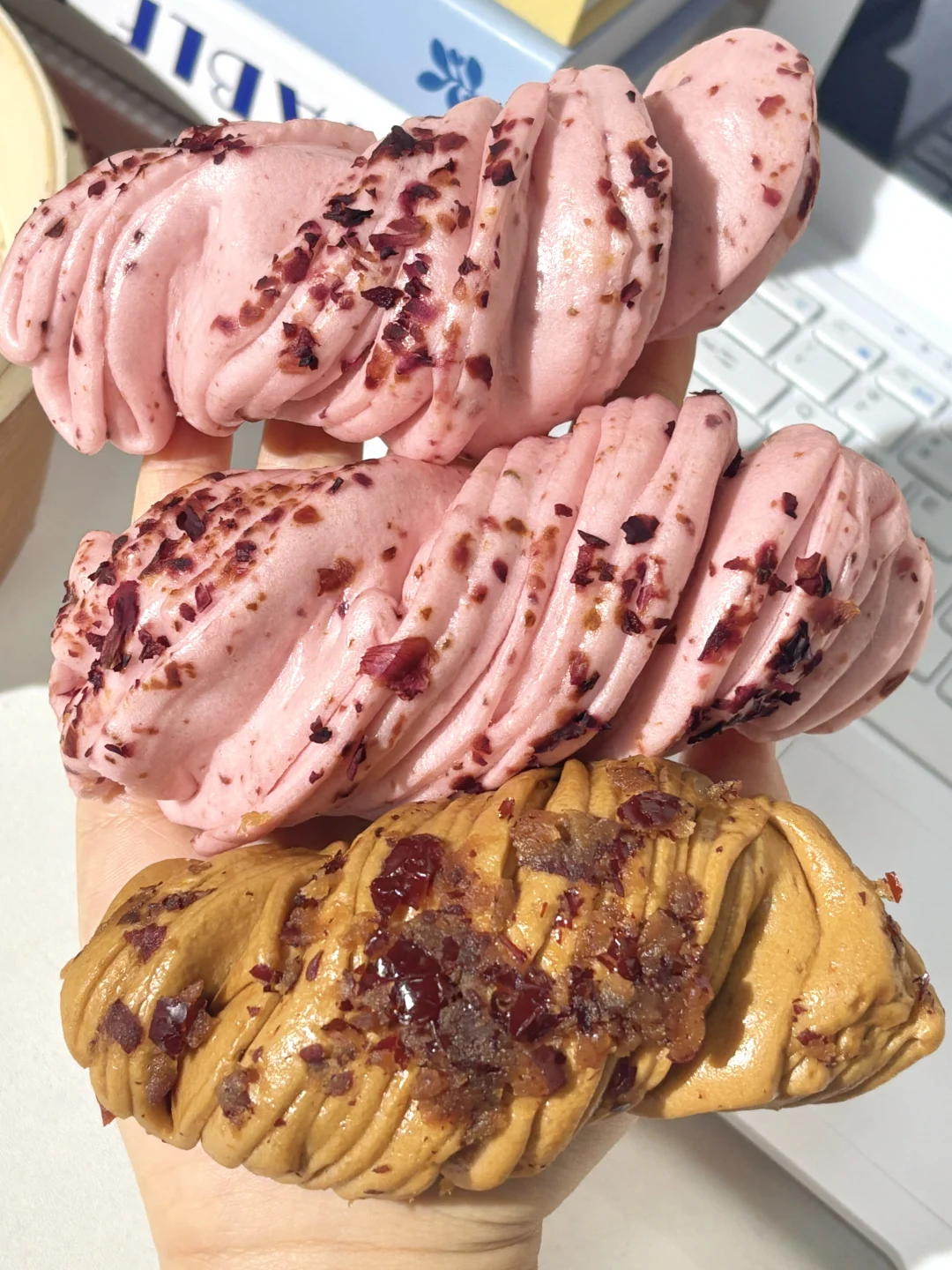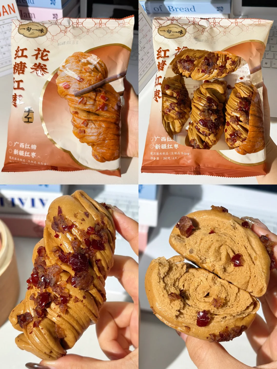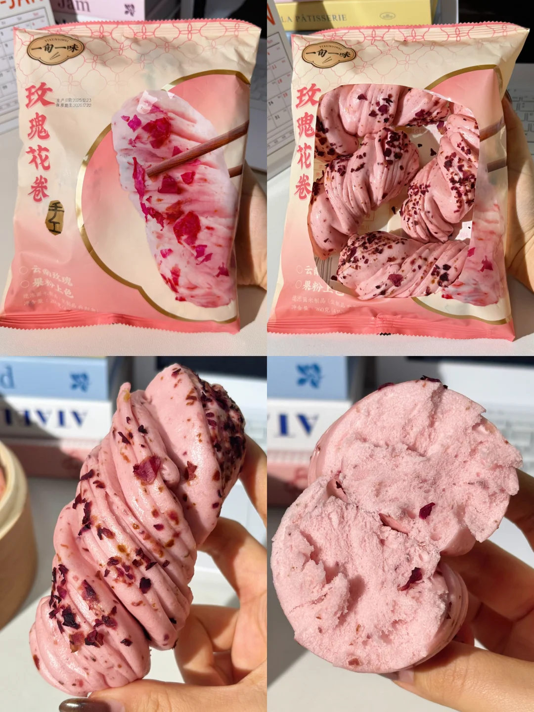 就是这个巨好吃的新中式馒头! 有玫瑰花卷+红糖红枣花卷!两种口味都很绝! 玫瑰花卷 每一个花卷都撒满了云南的玫瑰花瓣! 入口就是清甜的玫瑰花香!甜而不腻超好吃! 颜色也是粉粉嫩嫩的!嘎嘎好看! 红糖红枣花卷 刚蒸完满屋就飘着红枣香! 每一口都能吃到浓浓的红糖红枣香! 吃着松软蓬松!软乎乎的!越嚼越香! 他家都是手工成卷的!层次分明!口感非常丰富! 而且吃起来很方便,不用解冻上锅蒸10分钟就可以吃!蒸出来一点也不输现做的! 早上不想做饭的时候,蒸两个当早餐太幸福了!😭