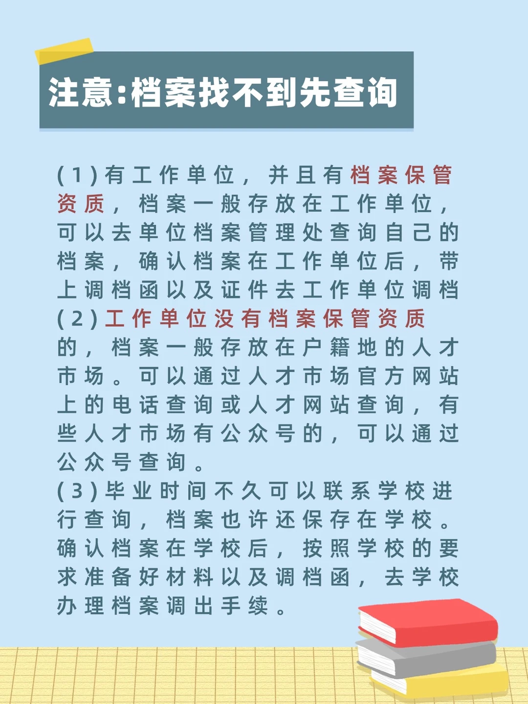 (3)毕业时间不久可以联系学校进行查询,档案也许还保存在学校。确认档案在学校后,按照学校的要求准备好材料以及调档函,去学校办理档案调出手续。