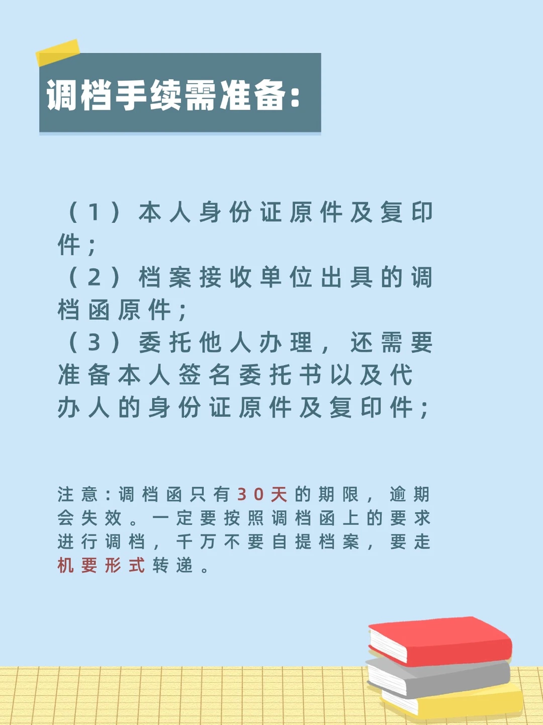 [暗中观察R]注意:调档函只有30天的期限,逾期会失效。一定要按照调档函上的要求进行调档,千万不要自提档案,要走机要形式转递。