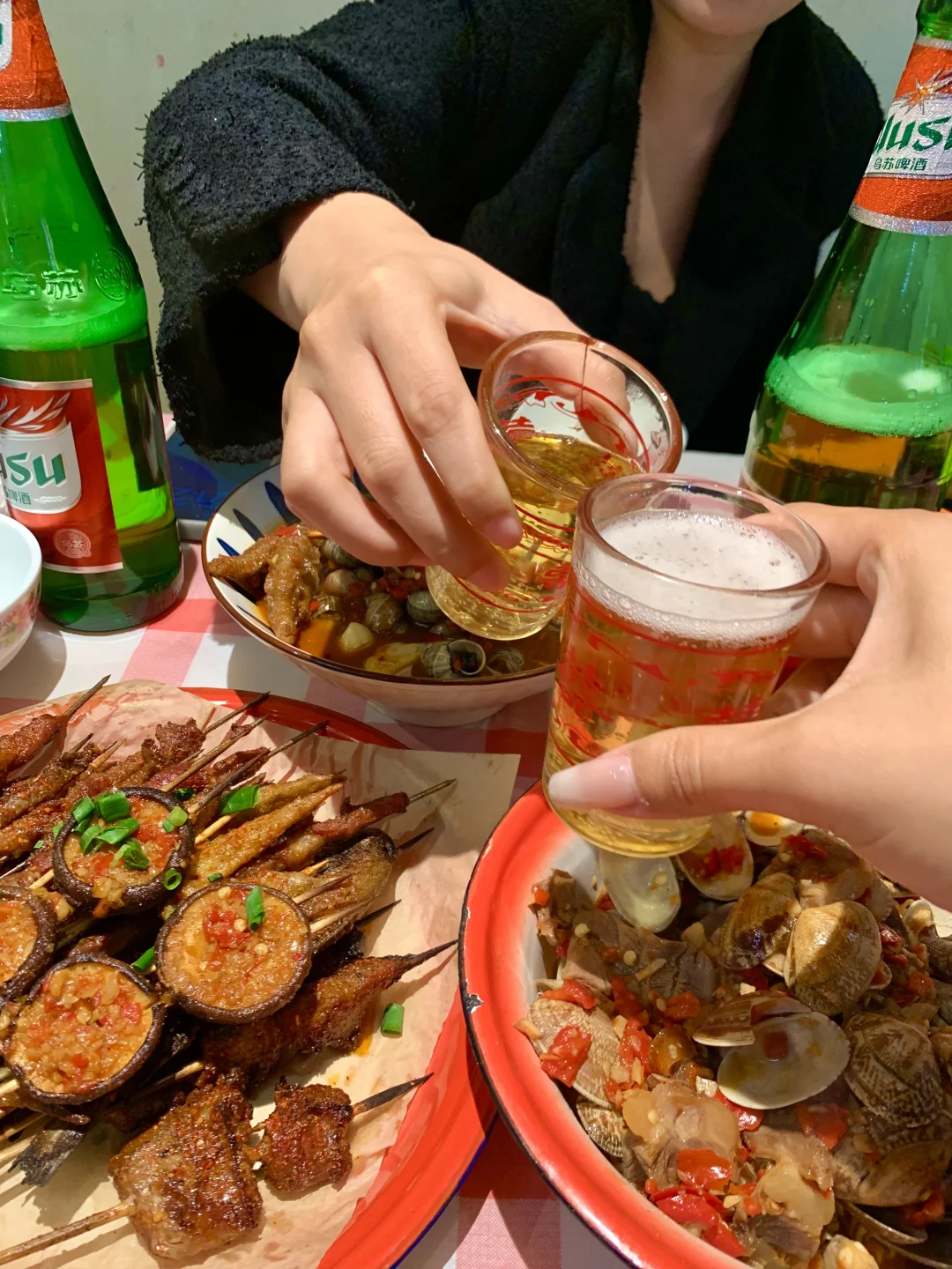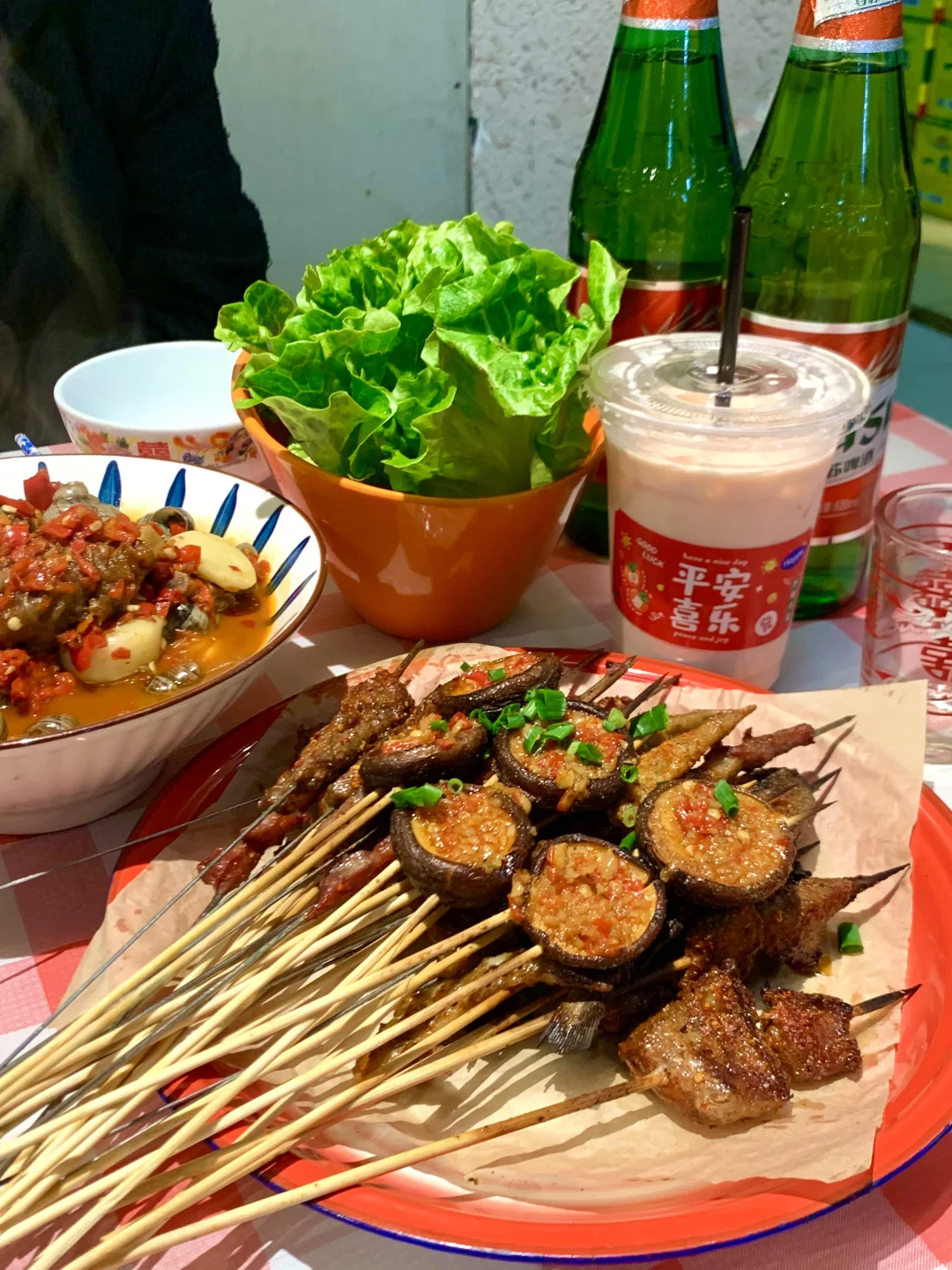 我和朋友想吃夜宵打车到市区 看到这家袁州州烧烤小排档 看到菜单她惊呆了一块钱一串都有 什么神仙价格 她说看到菜单就觉得好吃 果不其然 牛肉花甲泡面分分钟光盘 鸡爪钉螺也超够味 鸡爪很耙 螺丝很辣 蒜香排骨也超适合小朋友 不辣但脆香 烧烤🍖更别说了 又便宜又好吃 牛油香菇绝了 真的是随便点都不怕被价格背刺 真的超过瘾