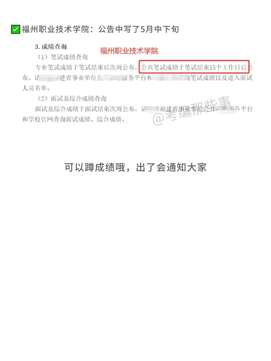 ✅福州职业技术学院:公告中写了5月中下旬
