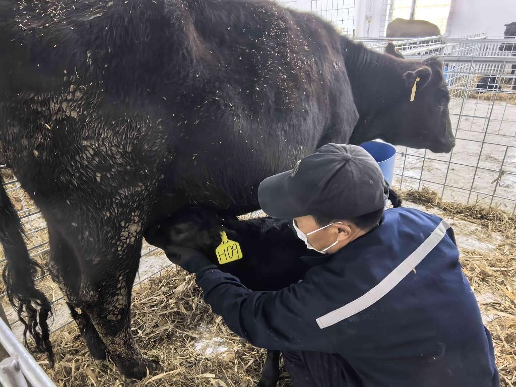 该项目的落地,填补了牡丹江肉牛规模化养殖的空白。引进良种只是起点,实现本土繁育、构建全产业链才是目标。“安格斯牛早熟、繁殖性能好,成功实现自繁自育,我们构建从育种、养殖到加工、销售的全链条就有了坚实基础。”驻场兽医顺布尔一边检查牛犊健康状况一边说。目前,牧场对临产母牛和新生牛犊实行24小时精细化护理,确保“母子平安”。棚内还有346头母牛待产,预计产犊高峰将持续至2月底。