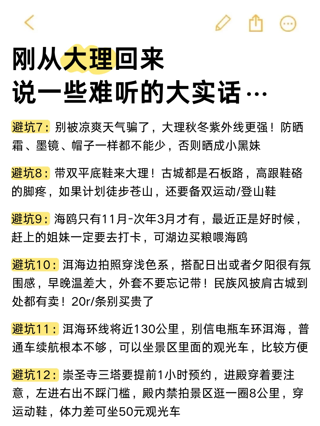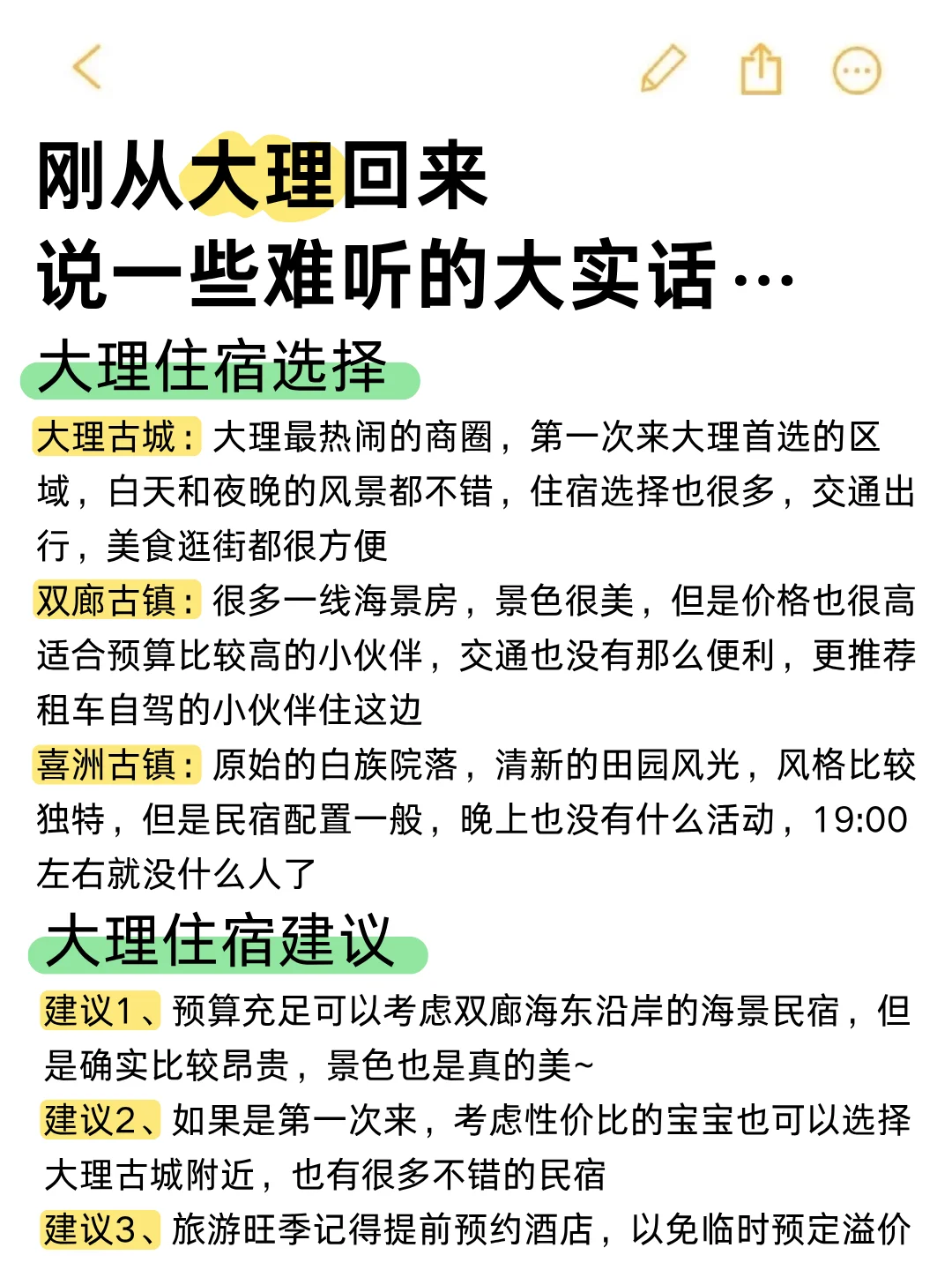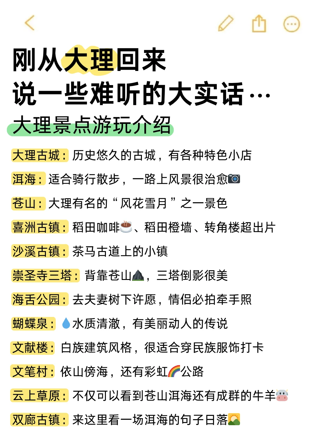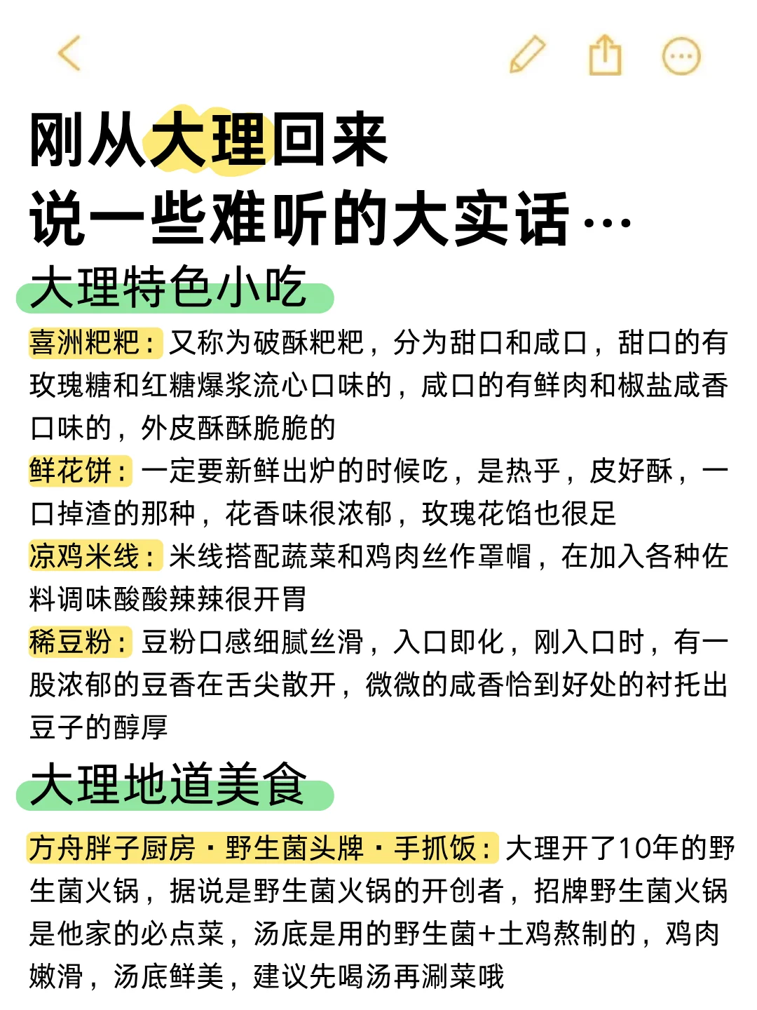 到了大理才知道,真的有很多需要注意的地方⚠这两天熬夜整理了一下大理旅游攻略,希望可以帮得到姐妹们👭 ✅大理3日游行程 1⃣DAY1:龙龛码头→磻溪S湾→喜洲古镇→大理古城→方舟胖子厨房·野生菌头牌·手抓饭 2⃣DAY2:理想邦→文笔村→小普陀→双廊古镇 3⃣DAY3:崇圣寺三塔→苍山→苍洱大道→兴盛大桥